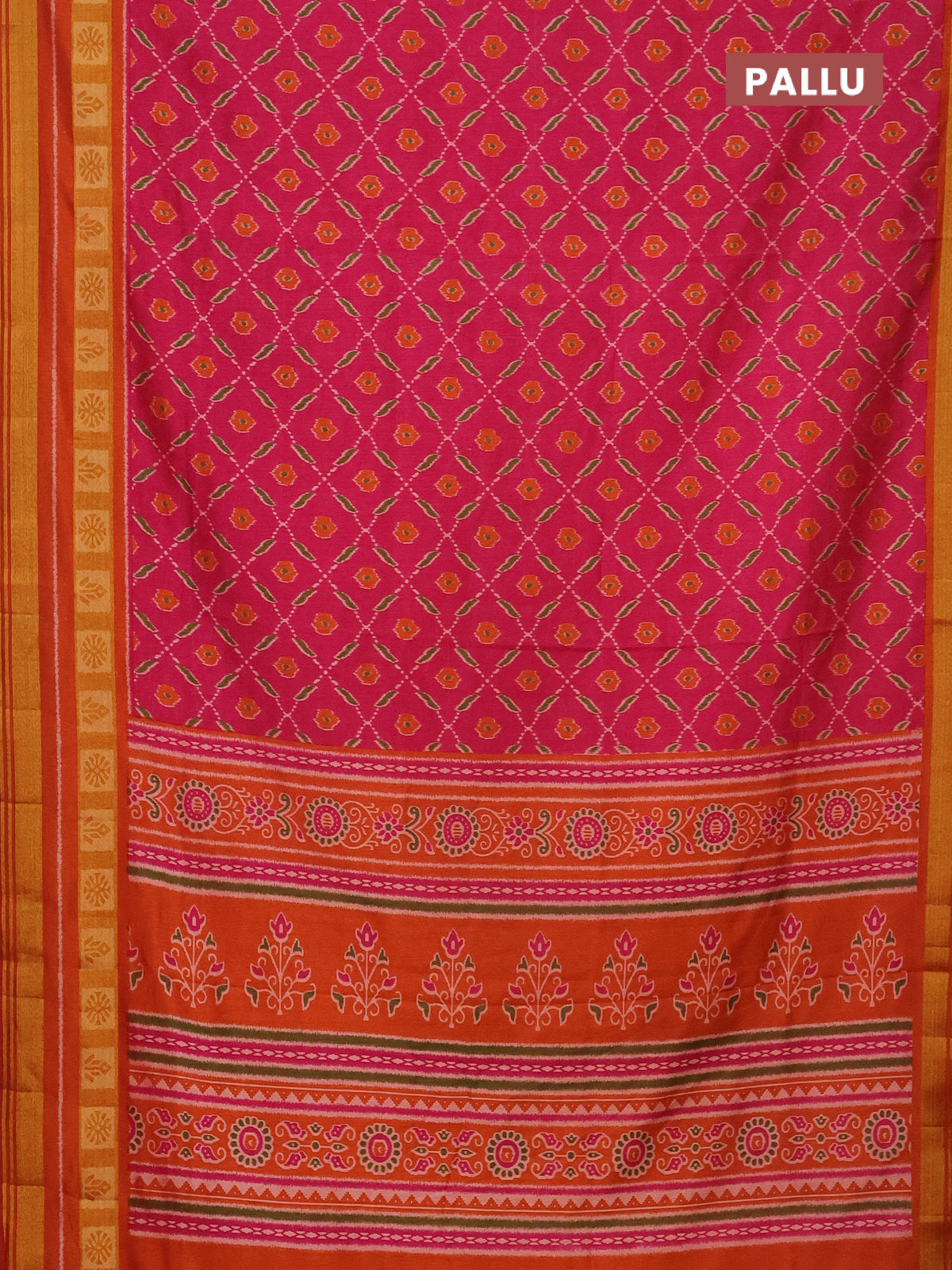 Semi tussar saree pink and rust shade with allover ikat prints and zari woven border
