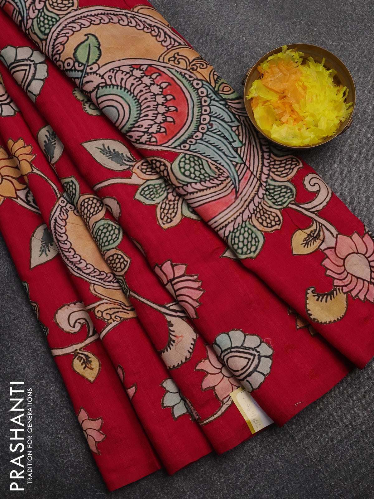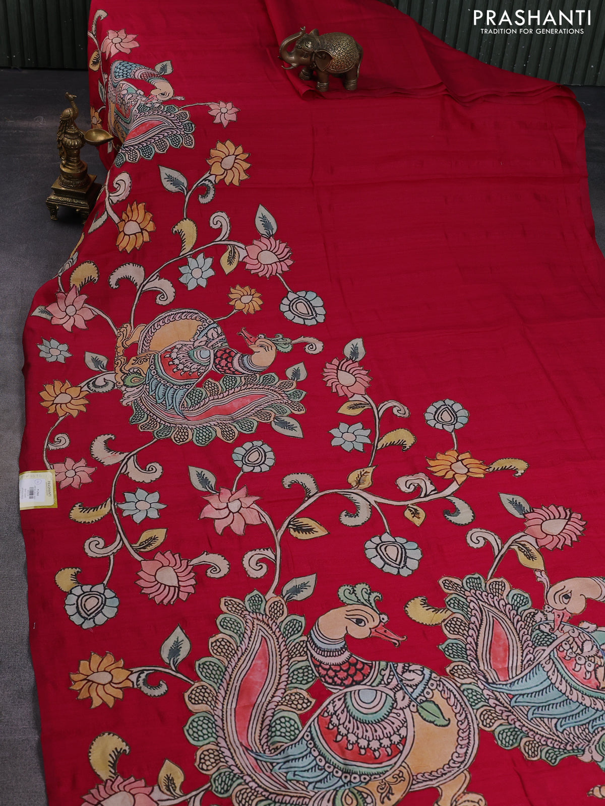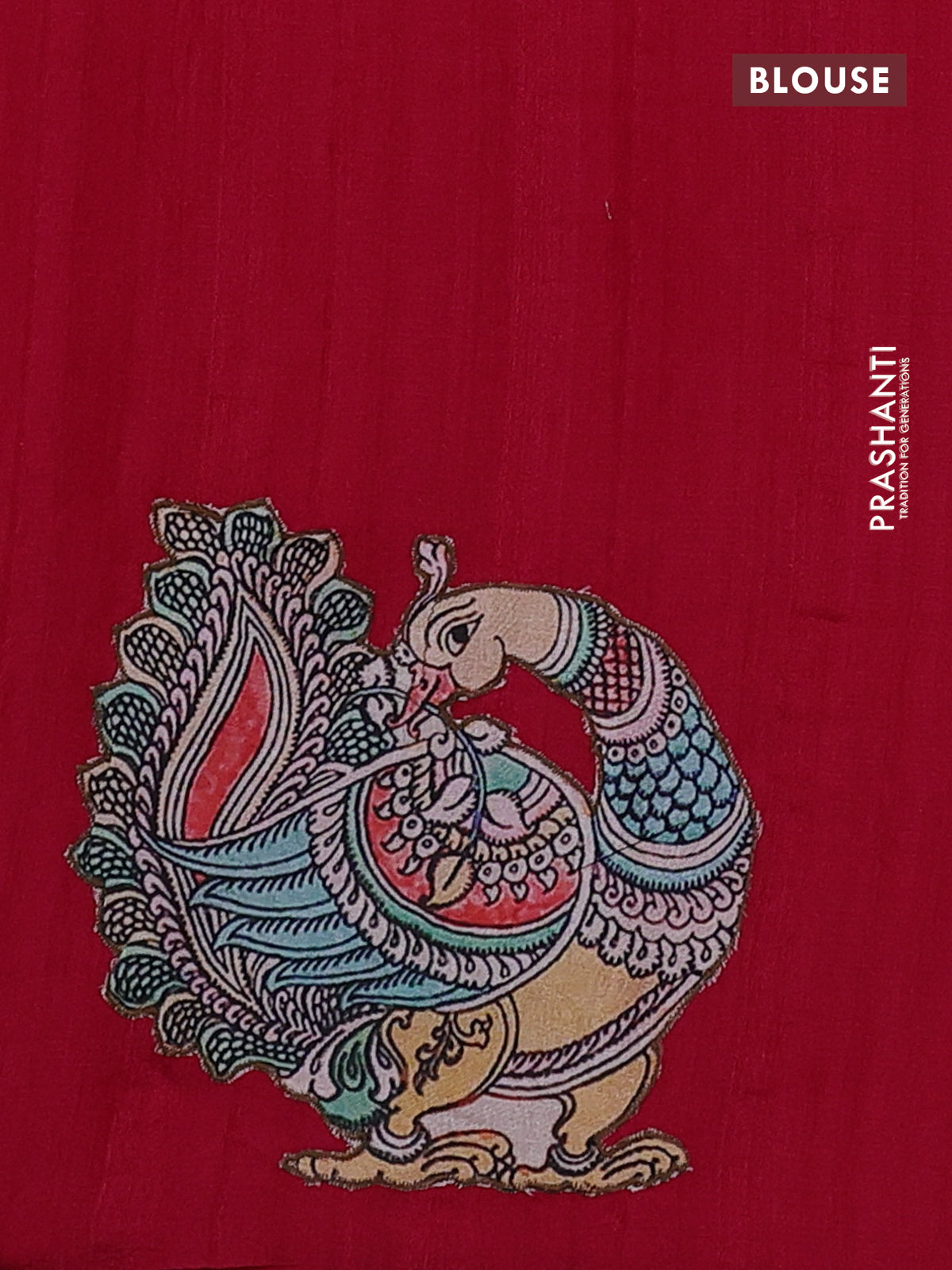 Semi tussar saree pink with kalamkari applique work in borderless style