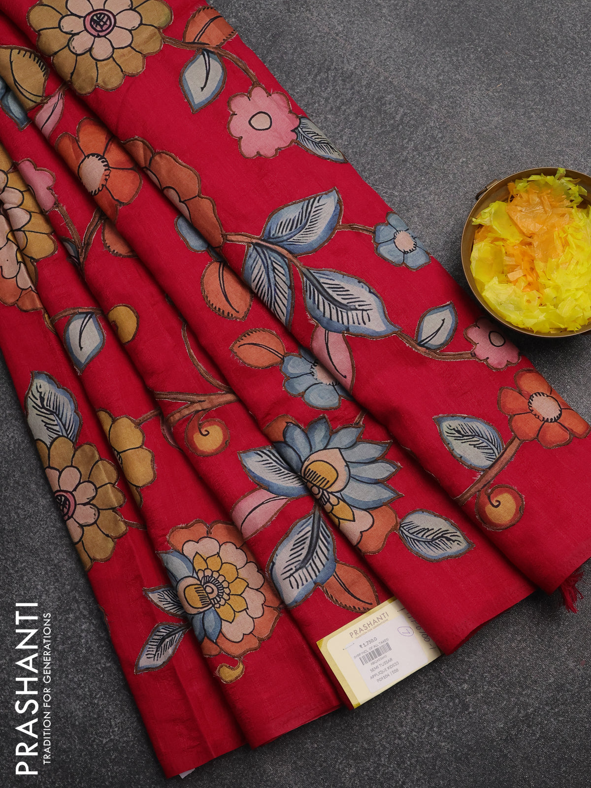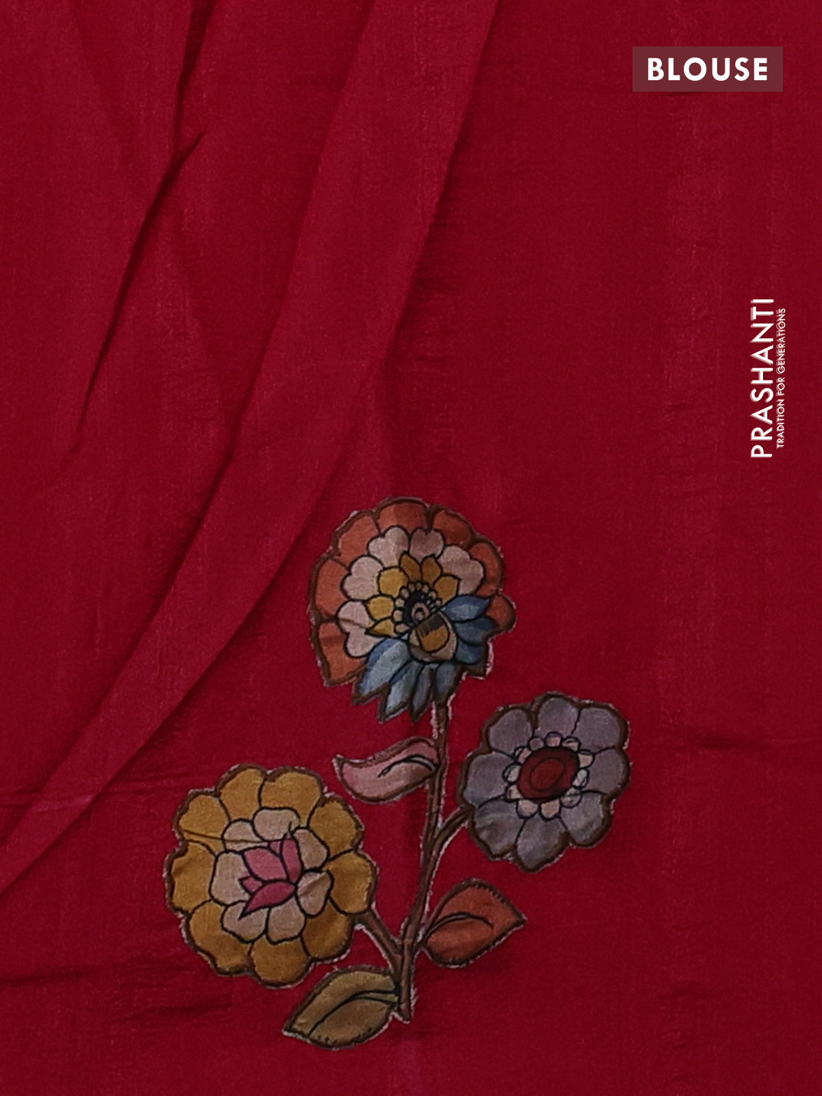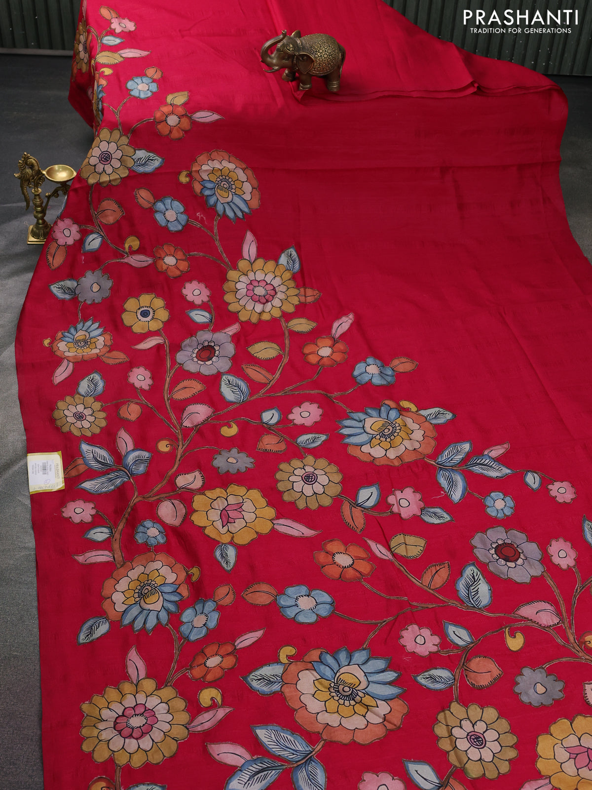 Semi tussar saree pink with kalamkari applique work in borderless style
