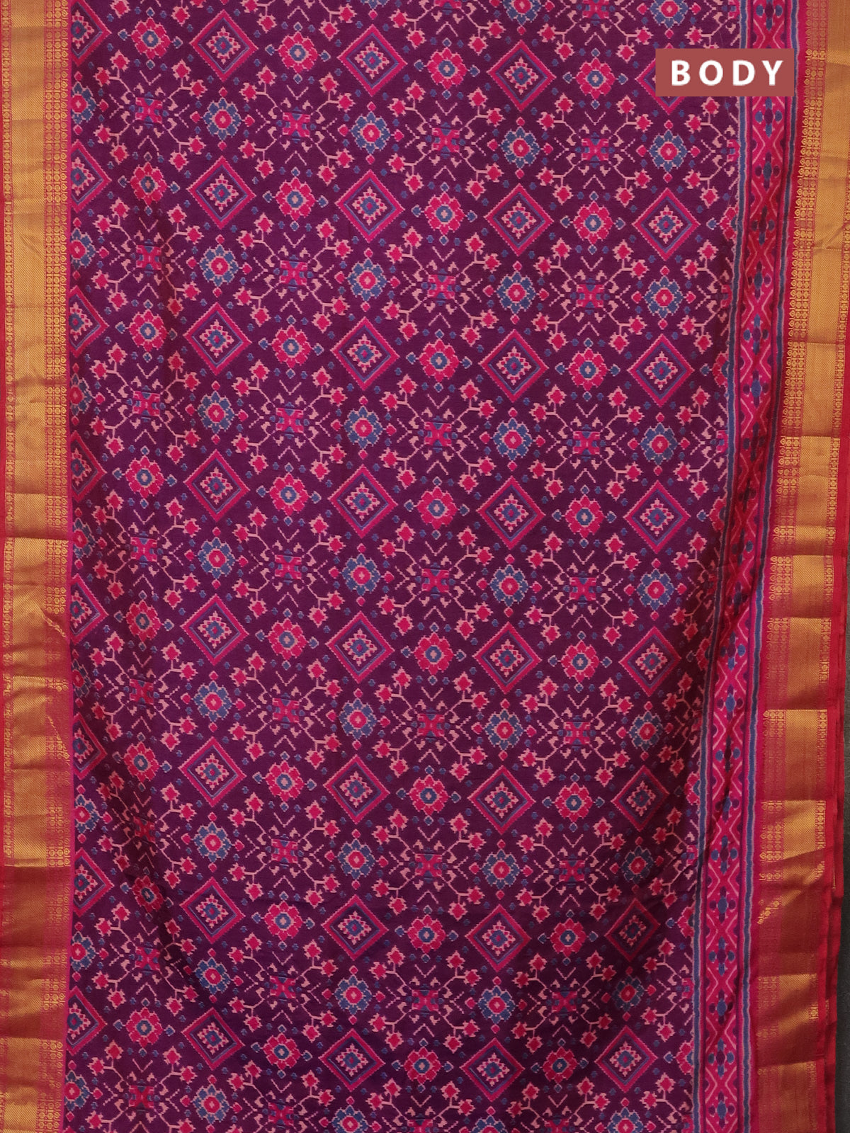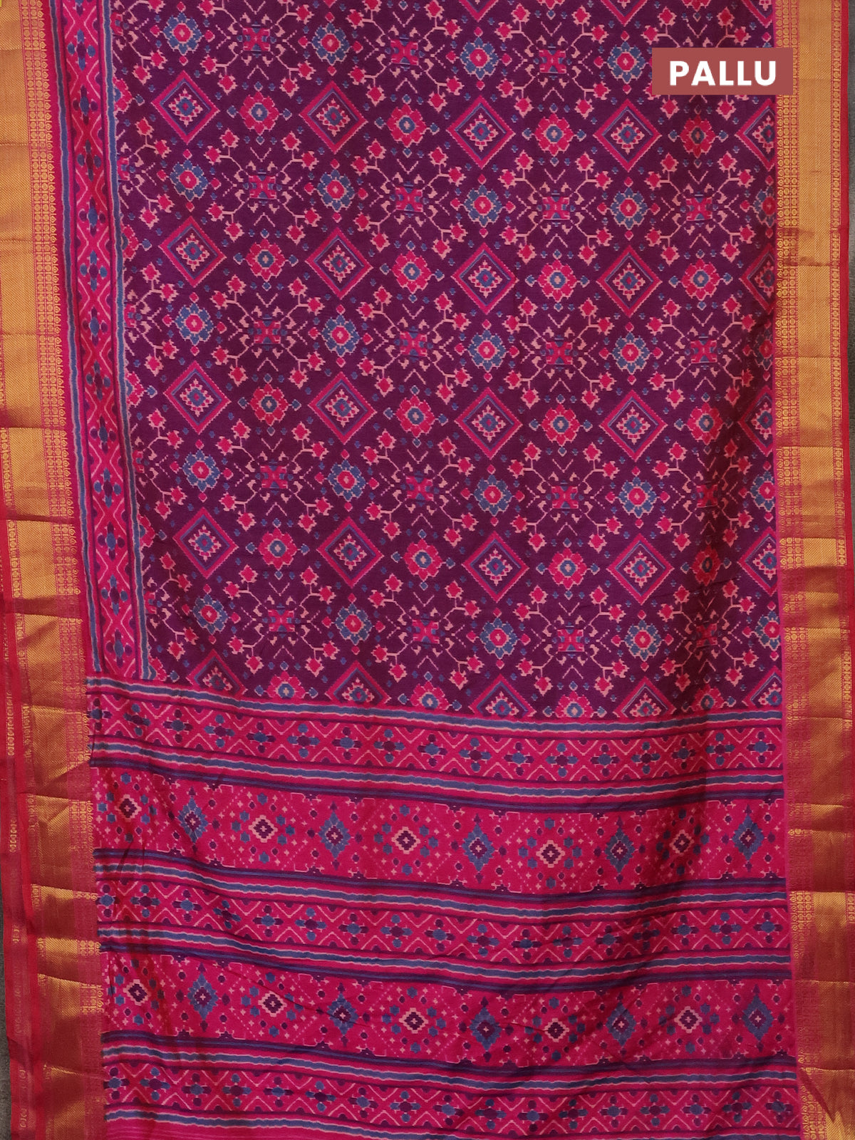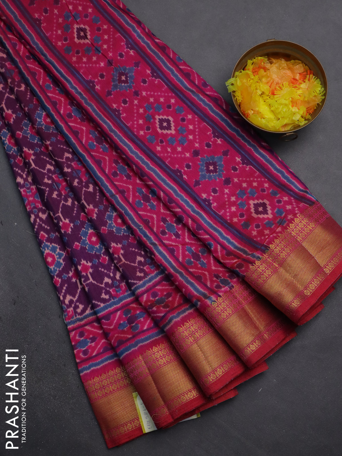 Semi tussar saree purple and pink with allover ikat prints and zari woven border