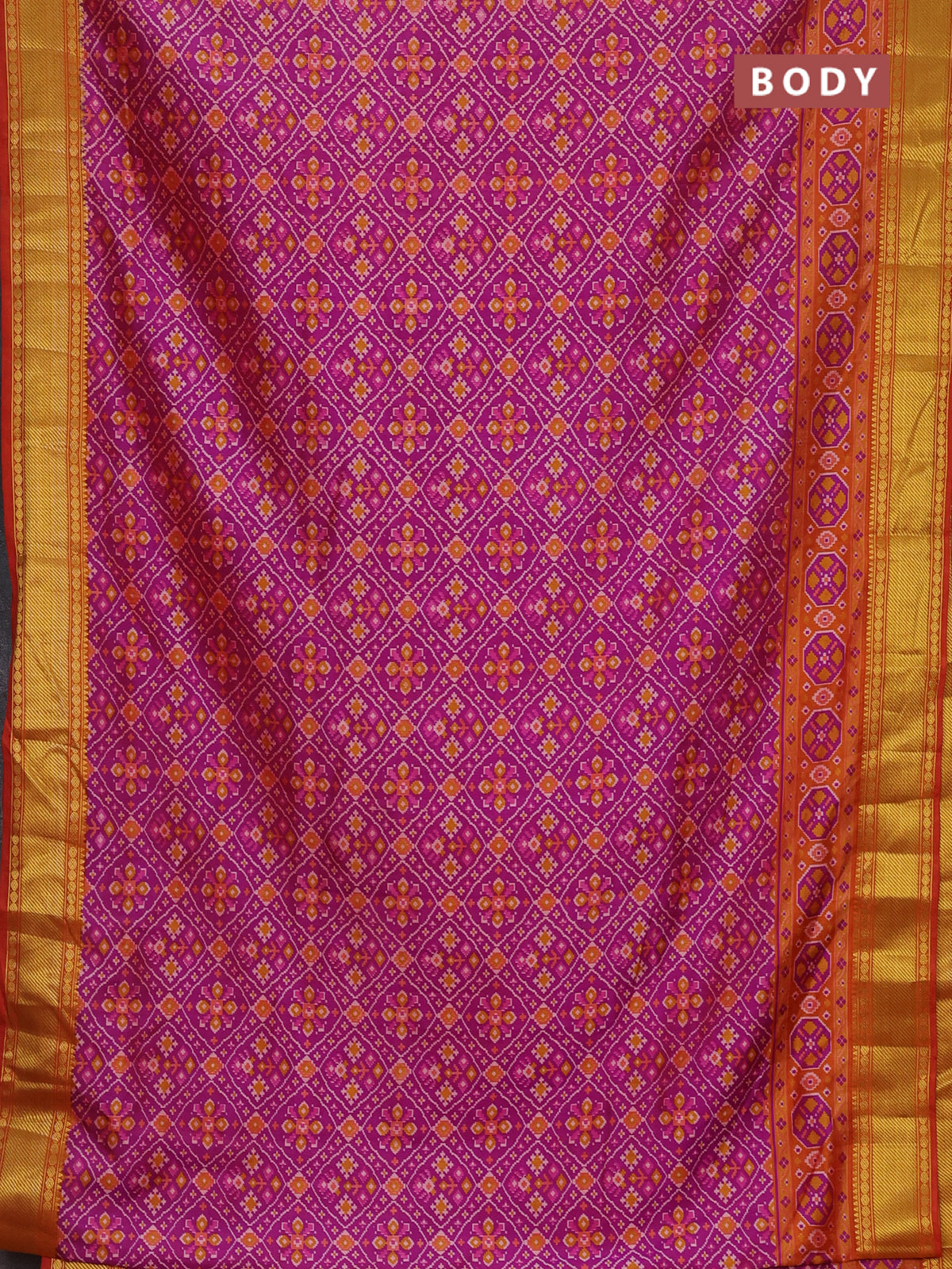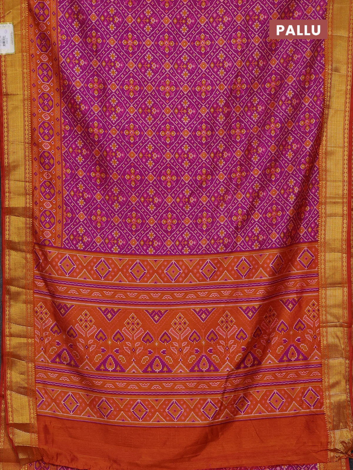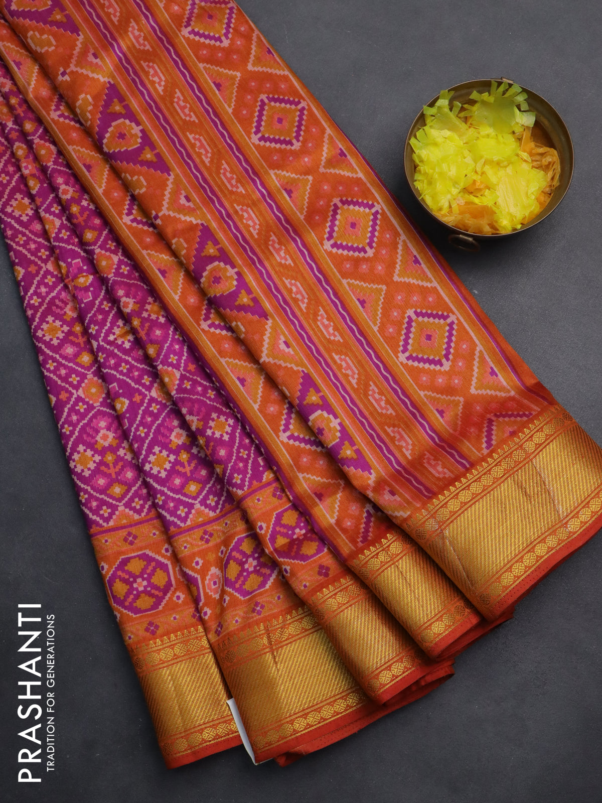 Semi tussar saree purple and red with allover ikat prints and zari woven border
