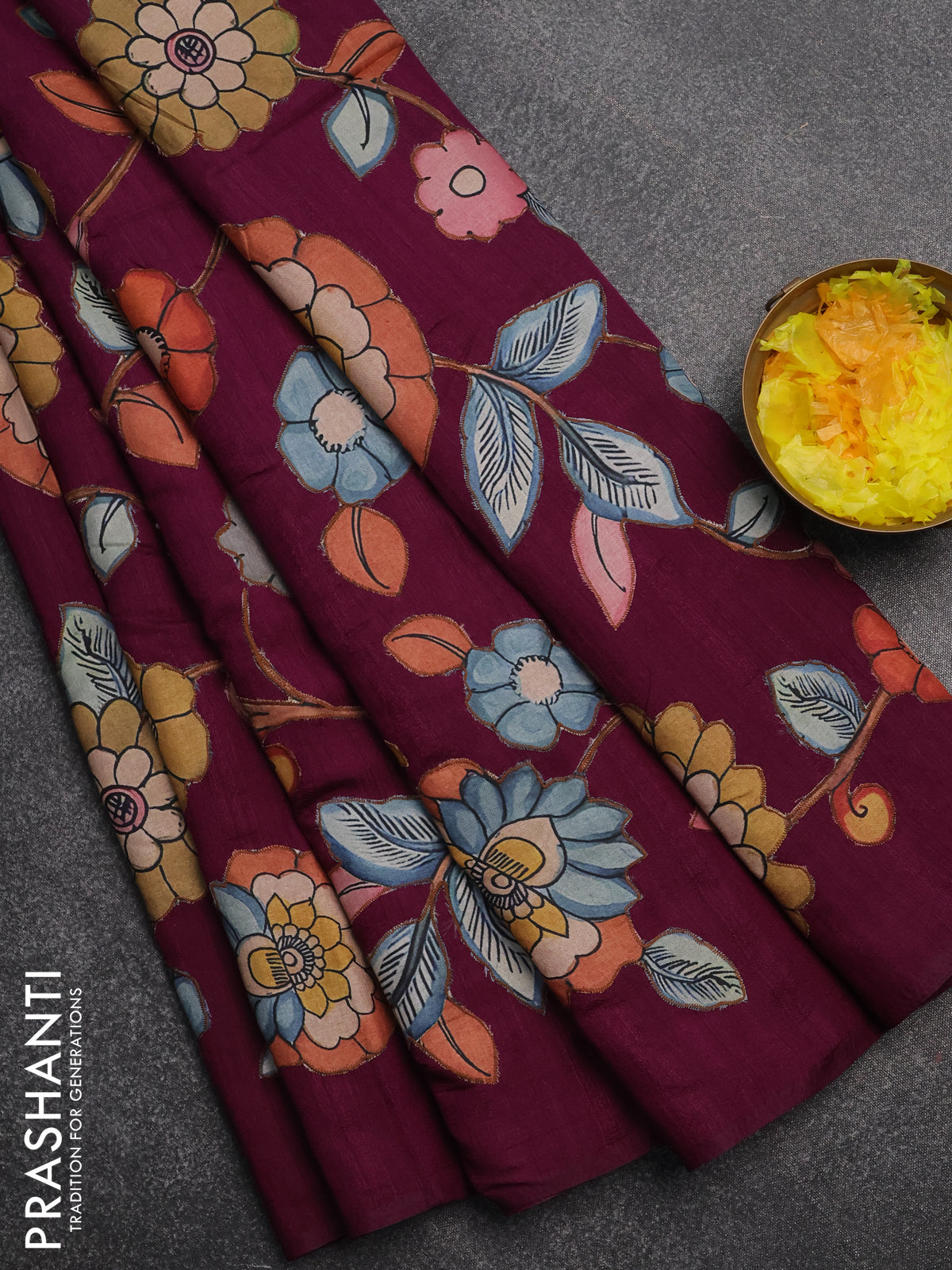 Semi tussar saree purple with kalamkari applique work in borderless style