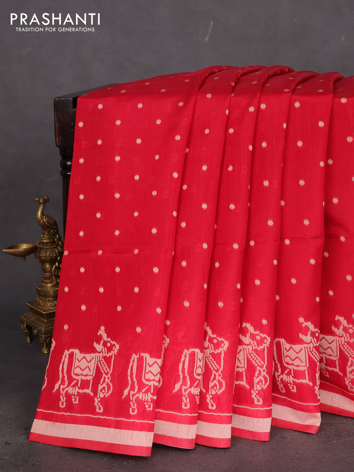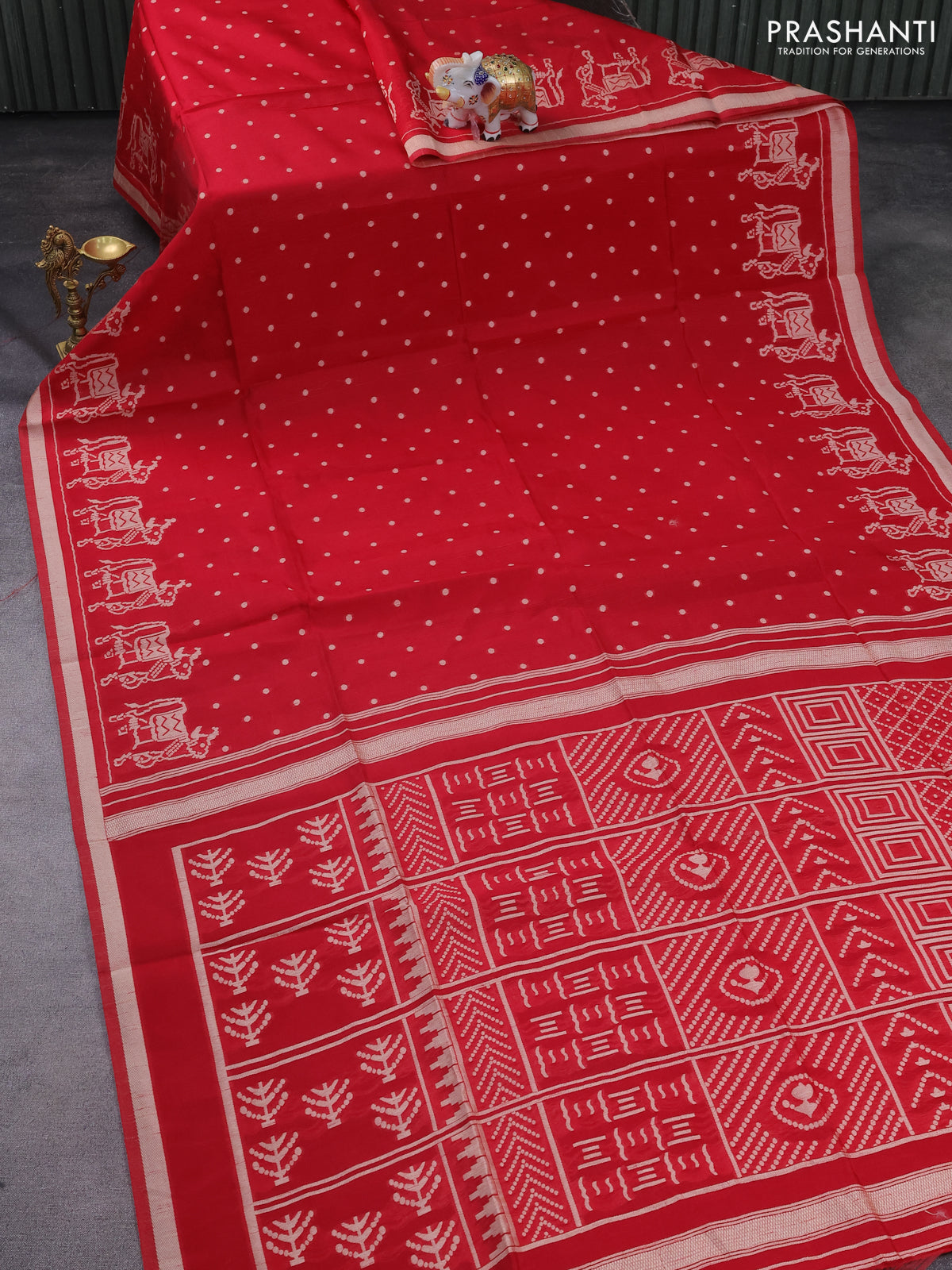 Semi tussar saree red with allover polka dot weaves and patola weaving pallu