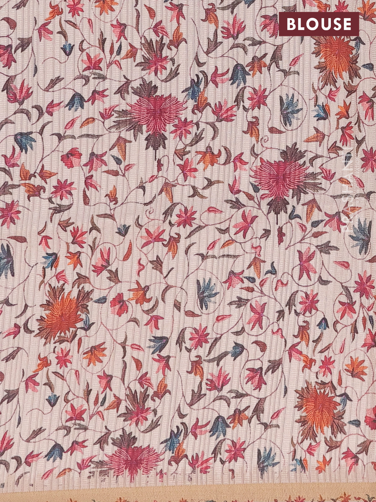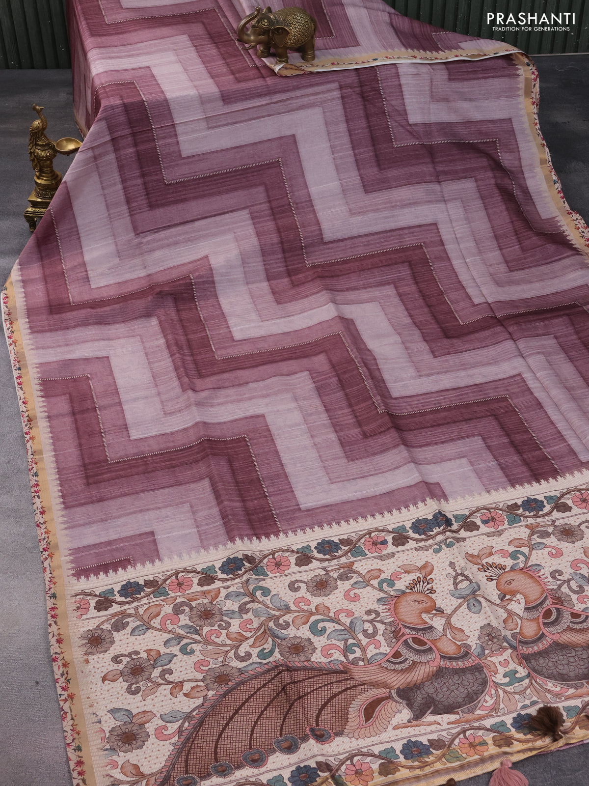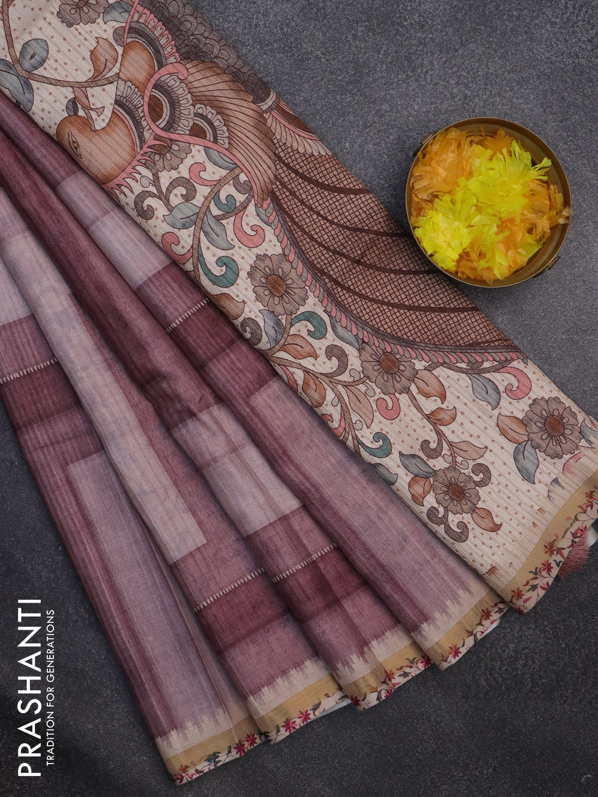 Semi tussar saree rosy brown and beige with allover geometric saree and kalamkari printed pallu