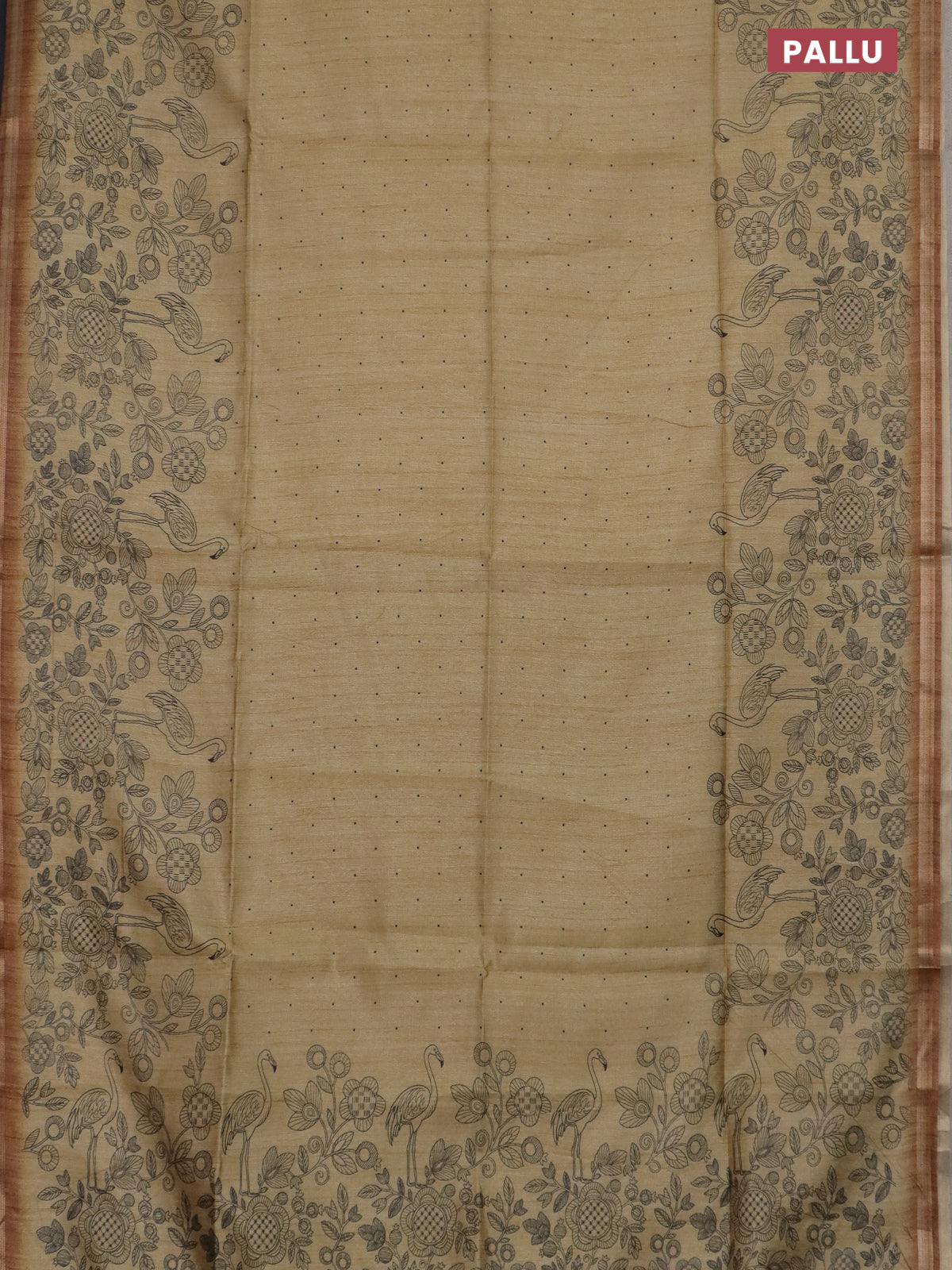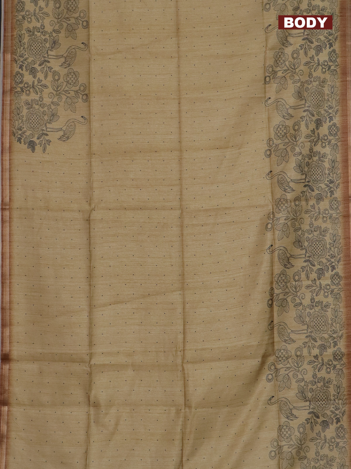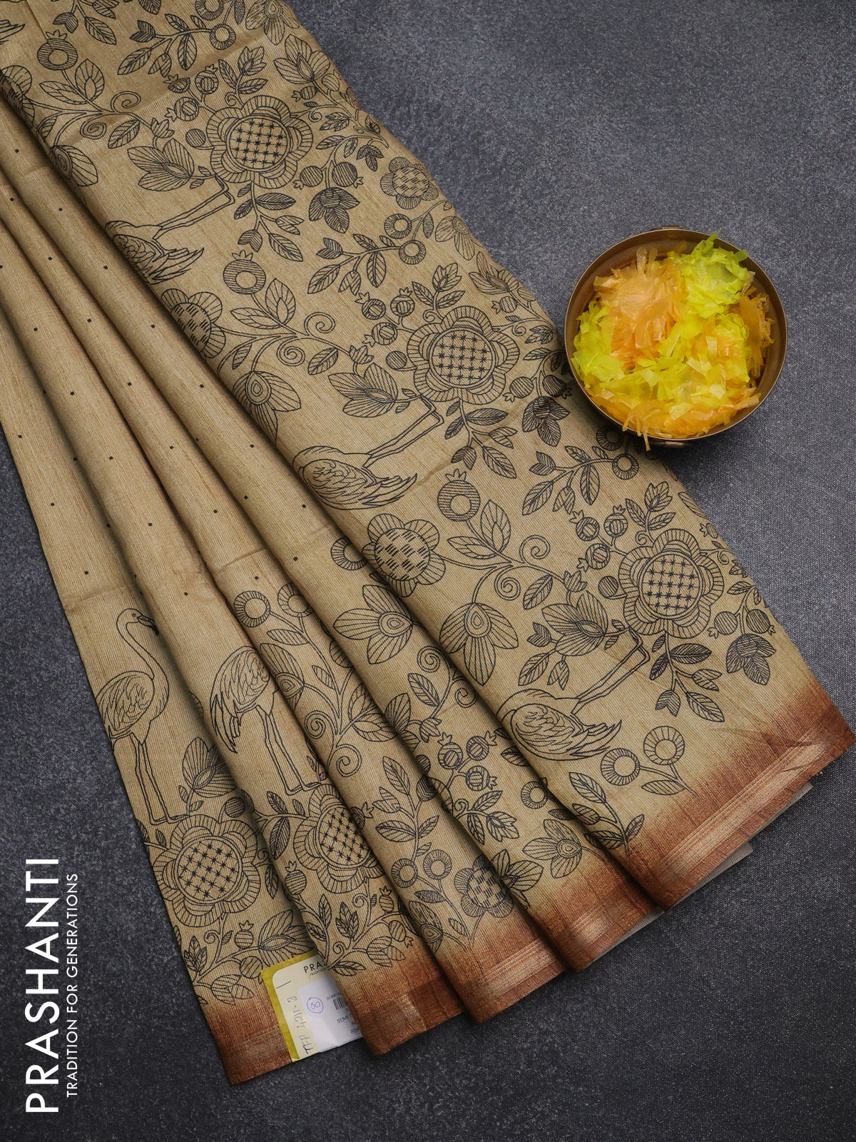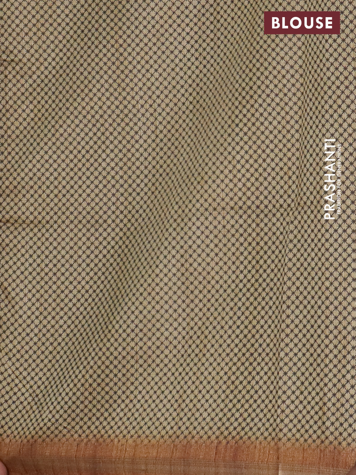 Material : Semi Tussar Blouse : Attached Length of saree : 6.2 mts (5.5 mts saree & 70 cms blouse)... Read more