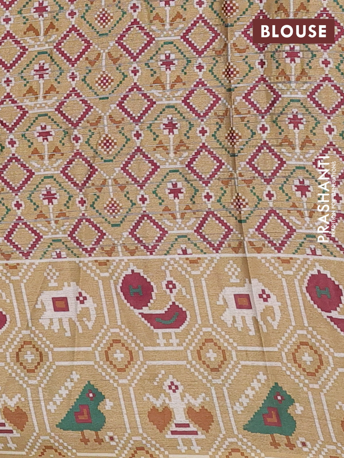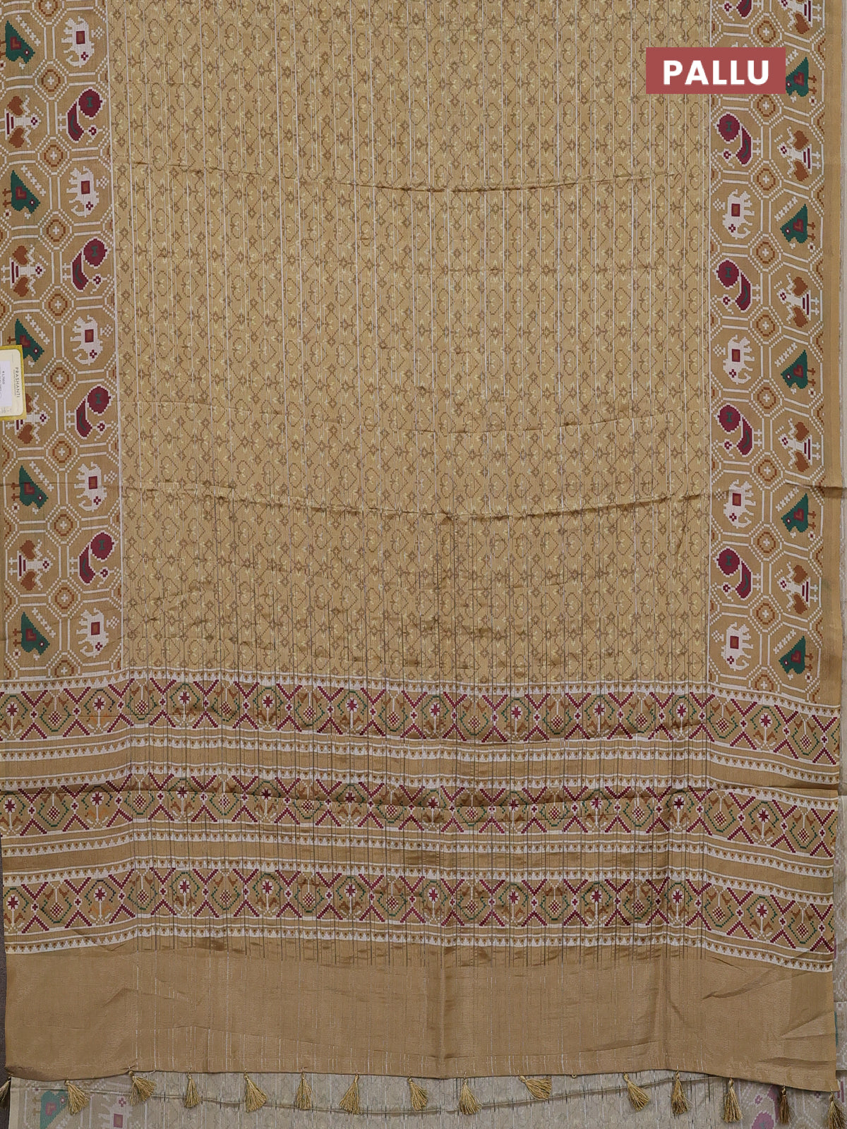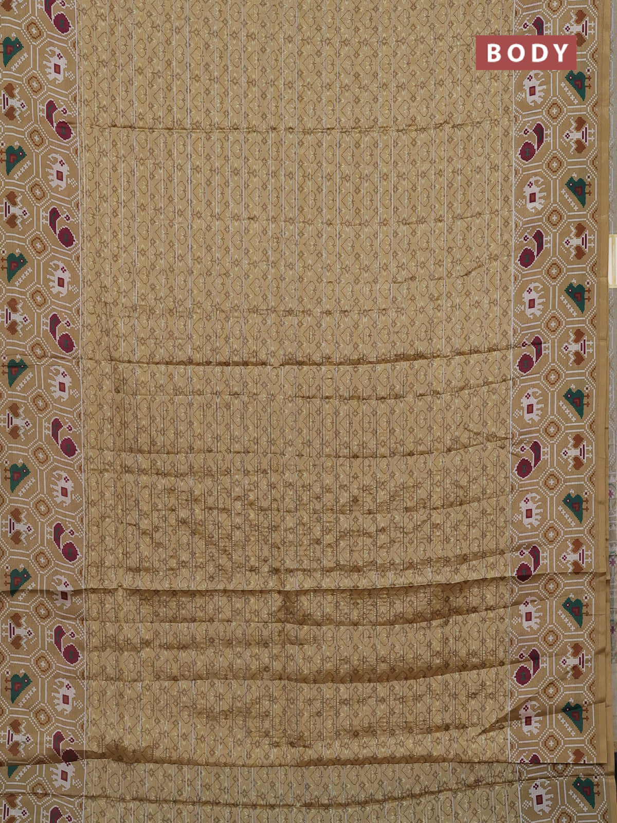 Semi tussar saree sandal with zari stripes pattern and patola printed border