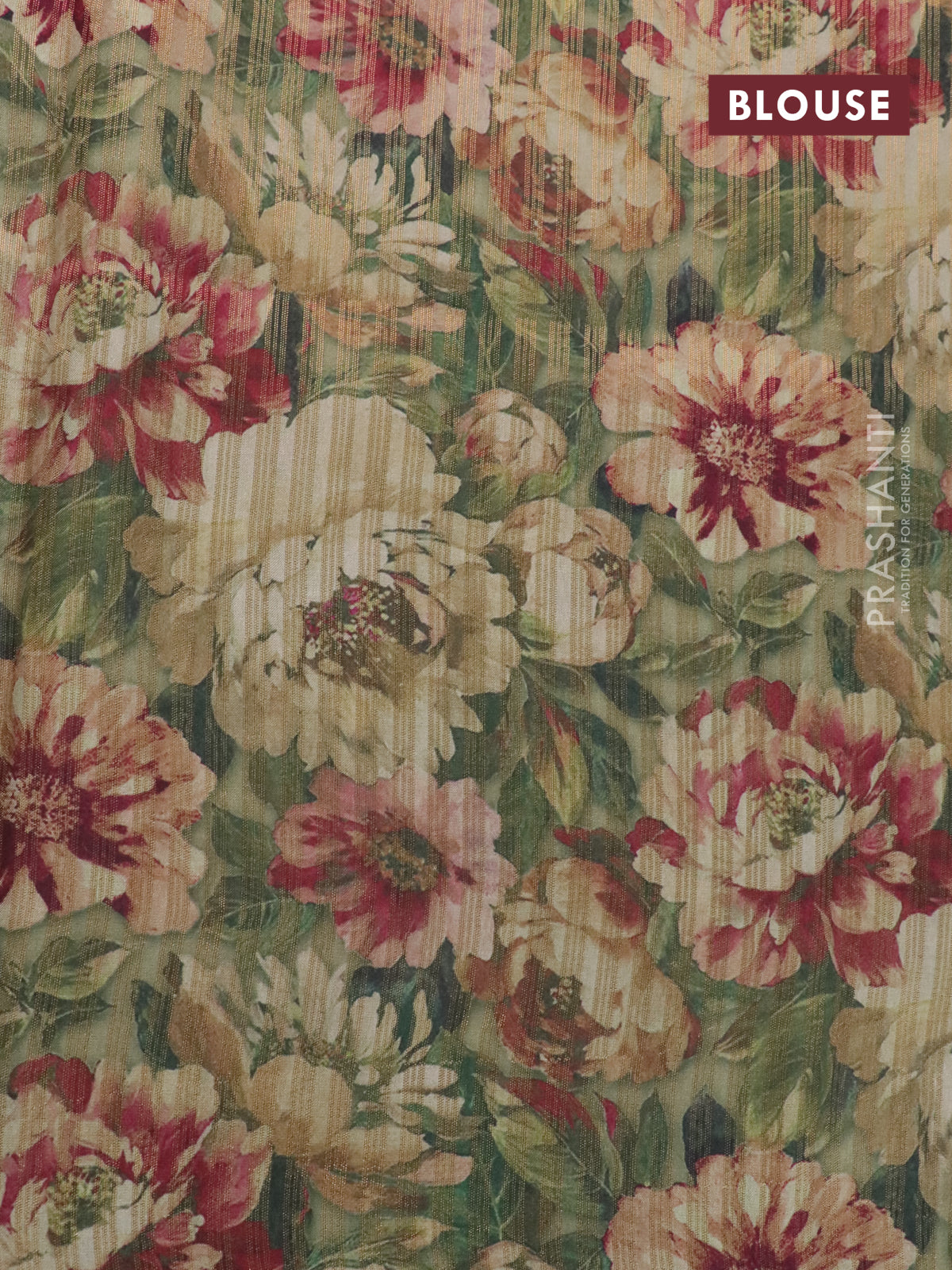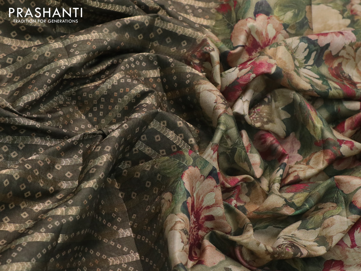 Semi tussar saree sap green with allover zari woven veldhari design & bandhani prints and floral printed border