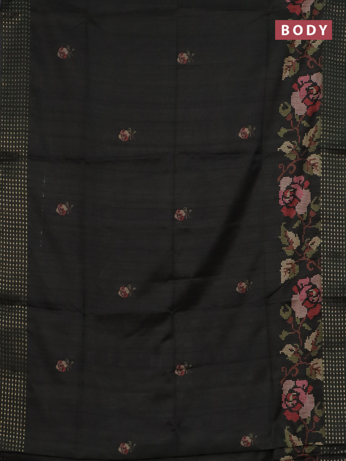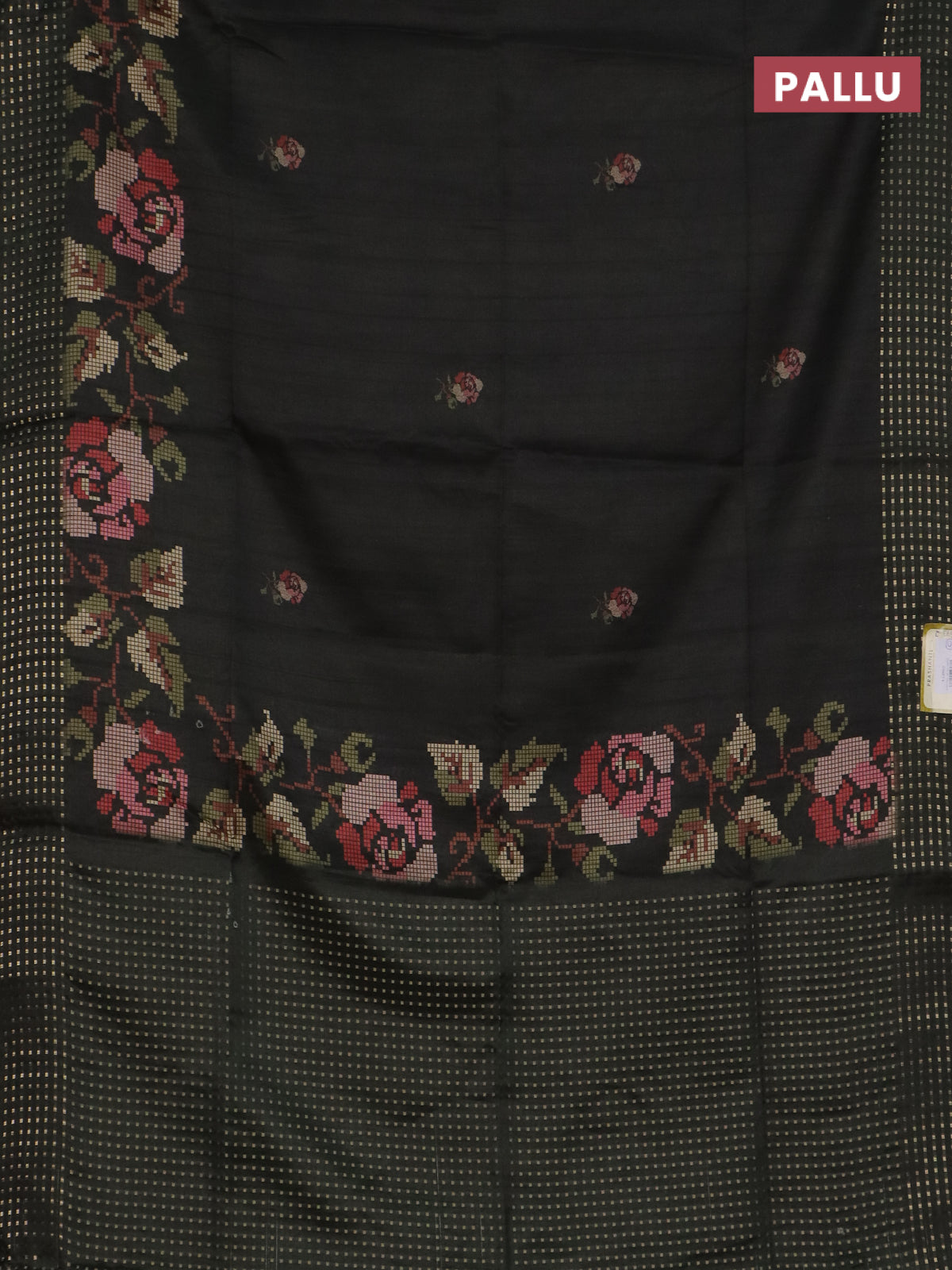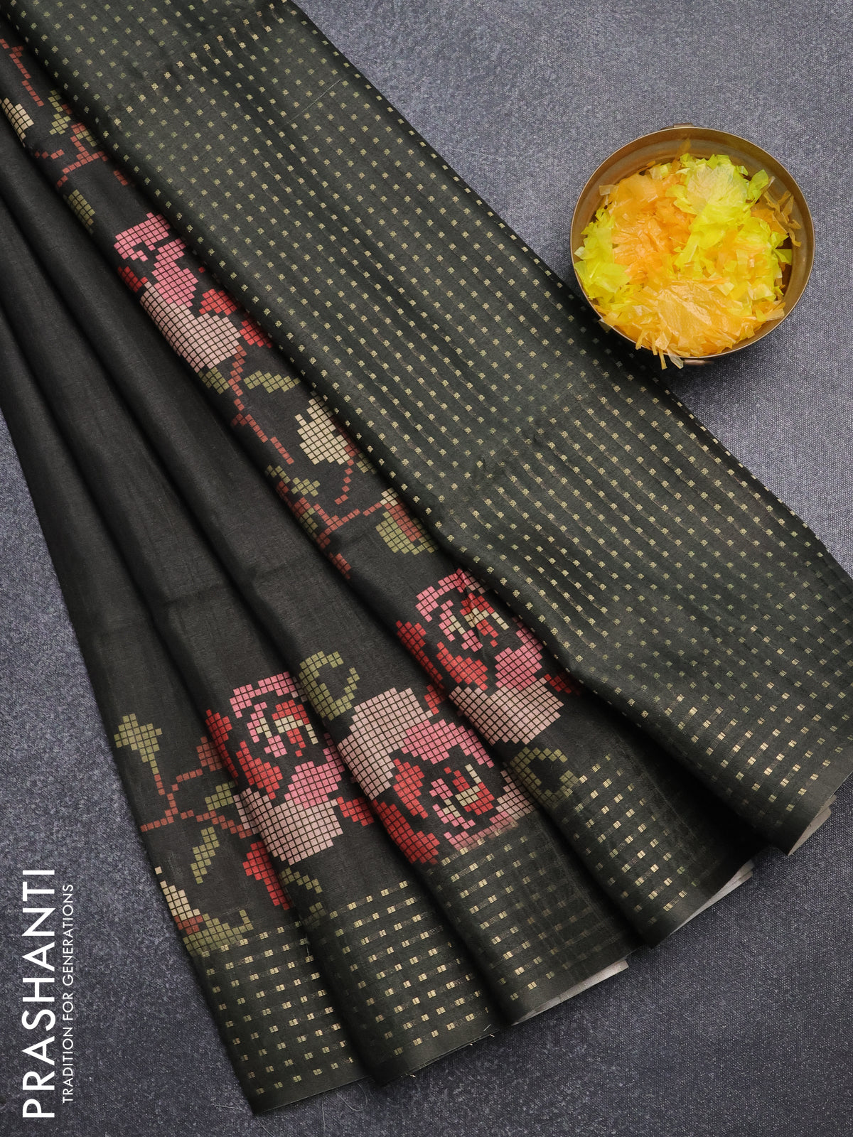 Semi tussar saree sap green with floral prints and zari woven pallu
