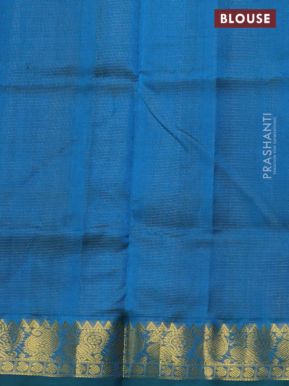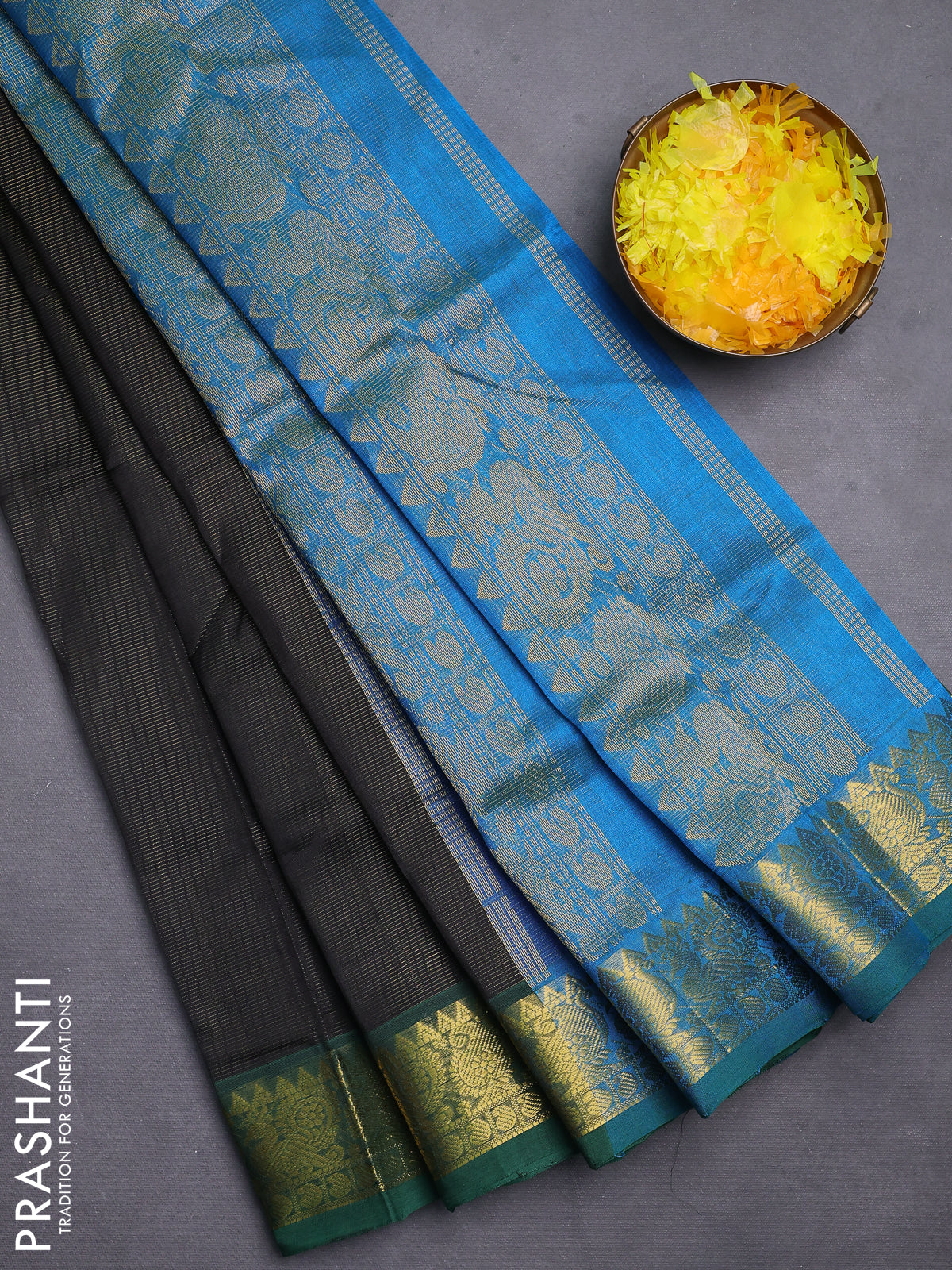 Silk cotton saree black and cs blue with allover vairosi pattern and annam & paisley zari woven border
