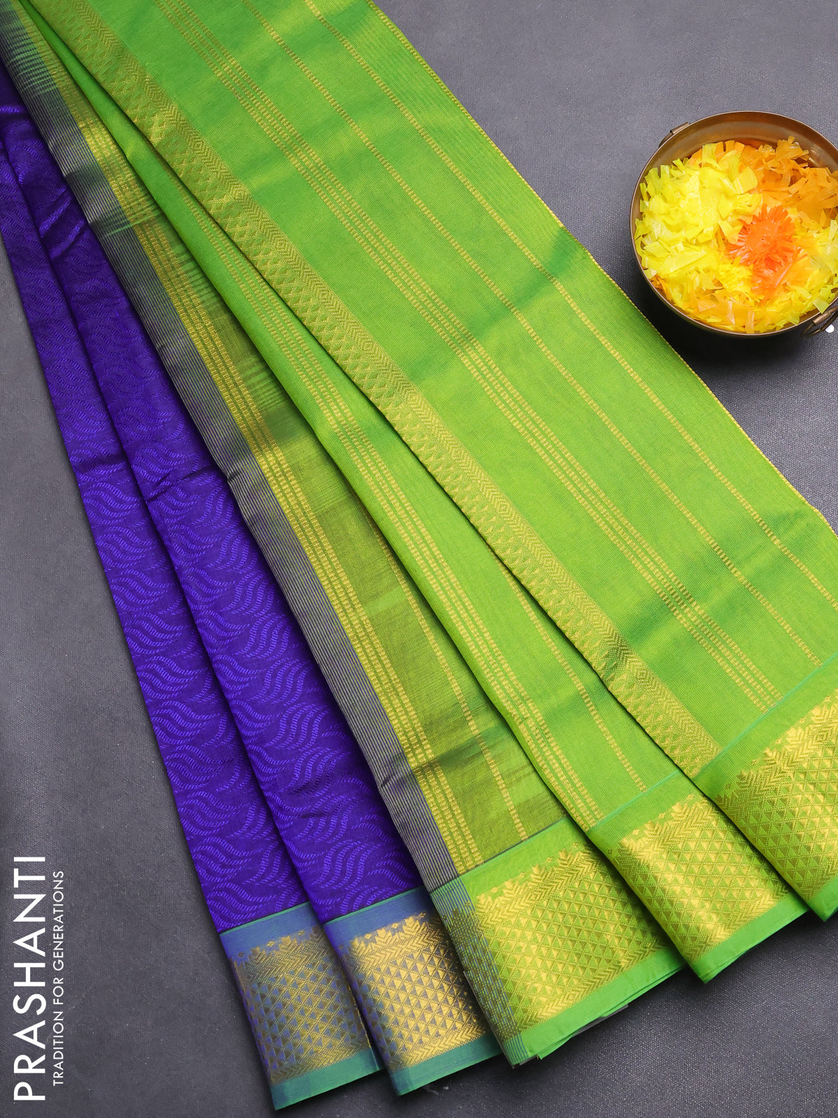 Silk cotton saree blue and light green with allover self emboss jacquard and zari woven border