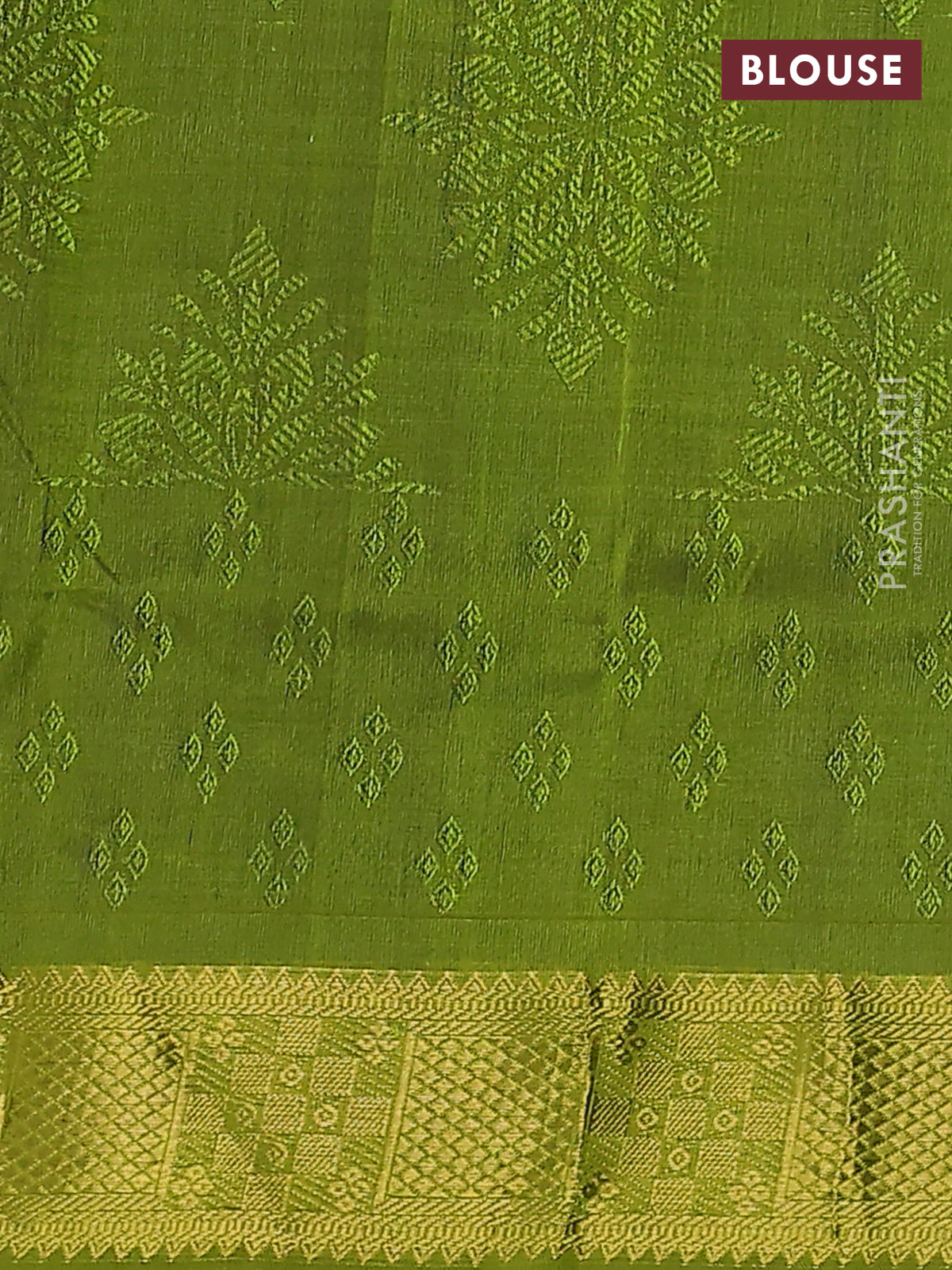 Silk cotton saree blue and light green with allover self emboss jacquard and zari woven border