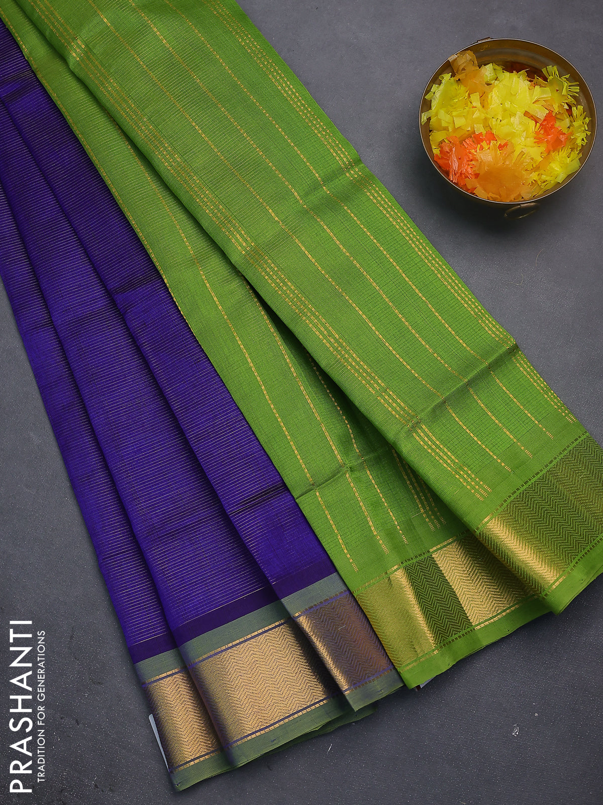 Silk cotton saree blue and light green with allover vairosi pattern and zari woven border