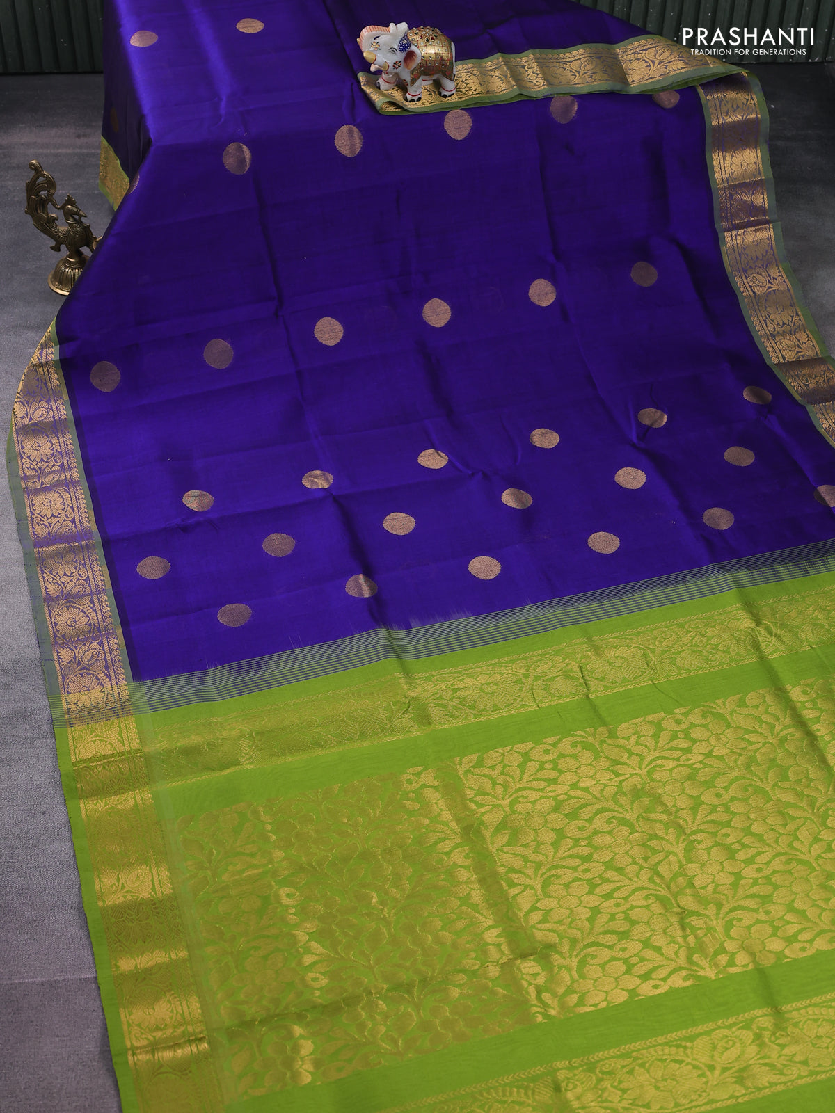 Silk cotton saree blue and light green with zari woven geometric buttas and rich zari woven border