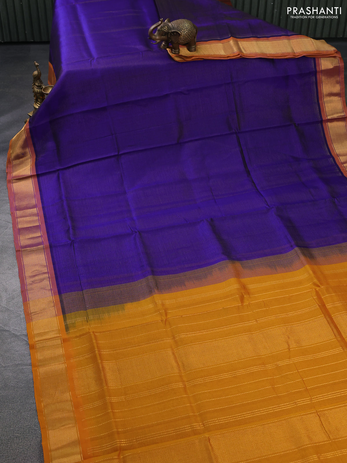 Silk cotton saree blue and mustard yellow with allover vairosi pattern and zari woven border