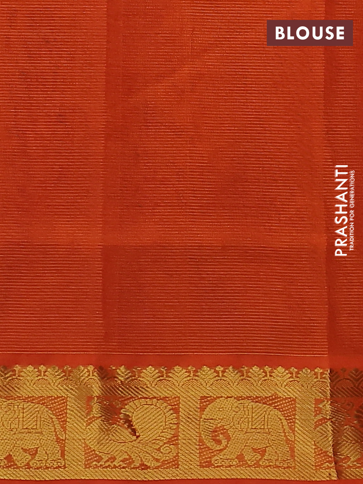 Silk cotton saree blue and orange with allover vairosi pattern and annam & rudhraksha zari woven border
