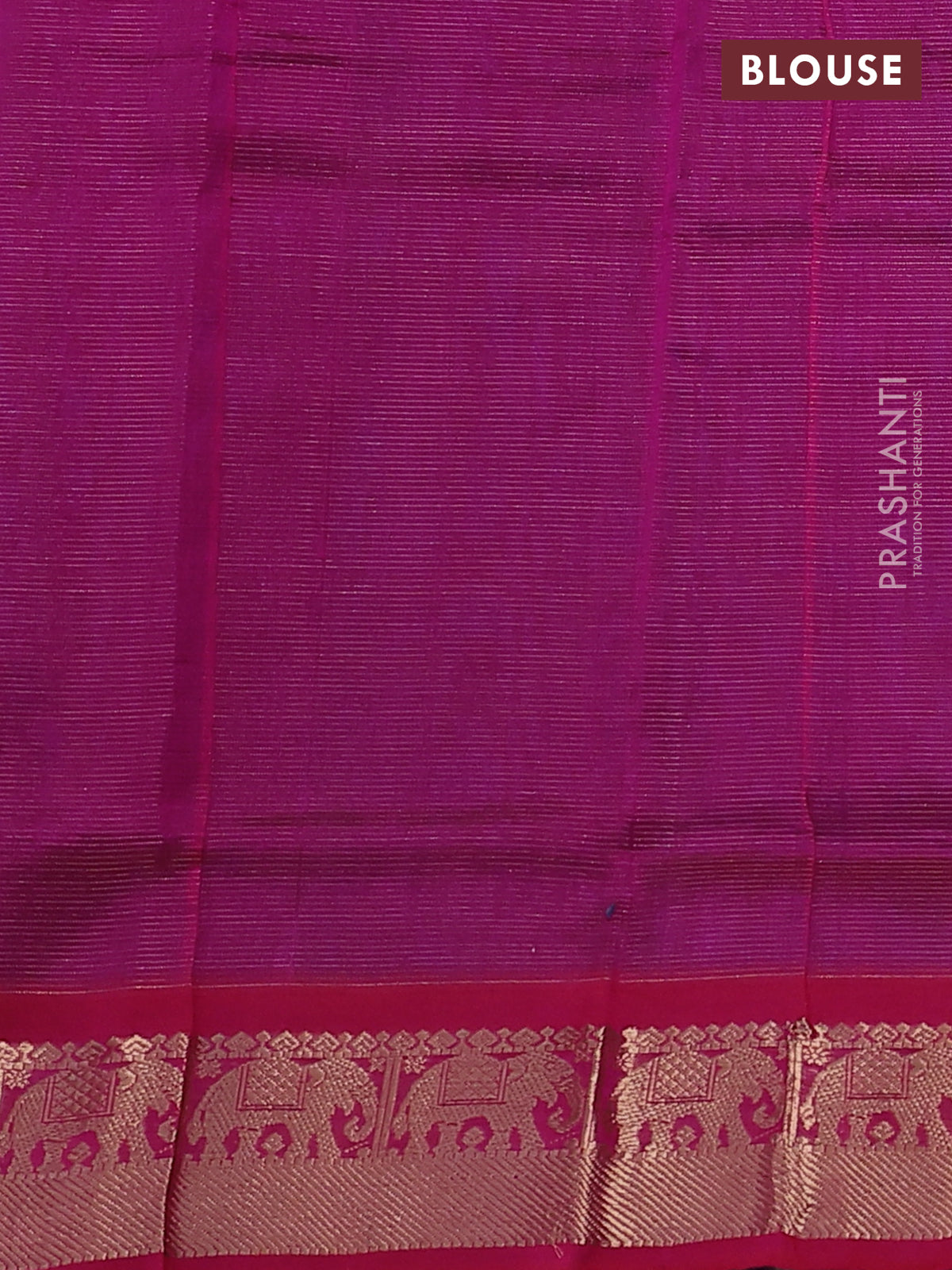 Silk cotton saree blue and pink with allover vairosi weaves & buttas and elephant zari woven border