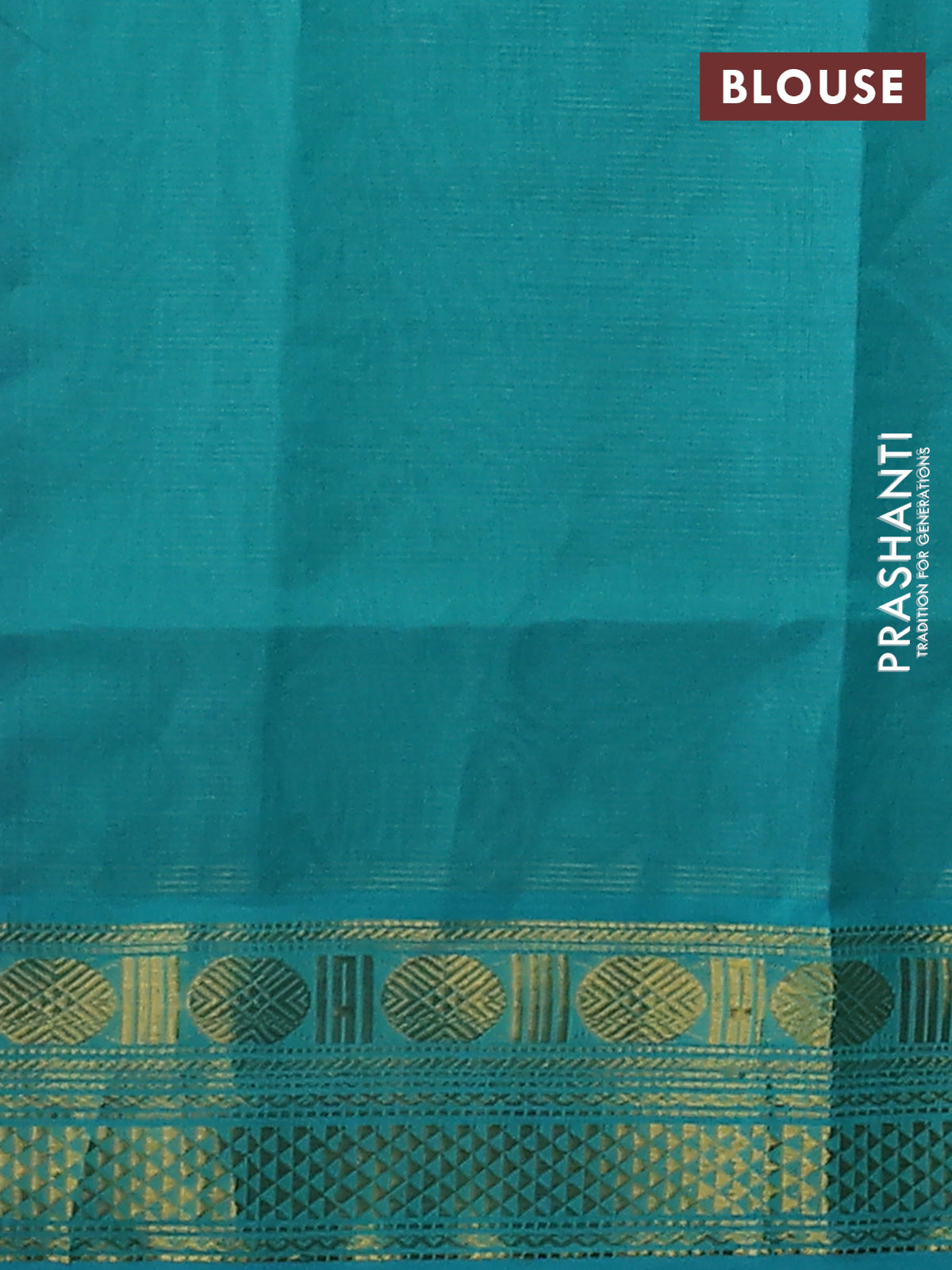 Silk cotton saree blue and teal blue with allover vairosi pattern and zari woven border