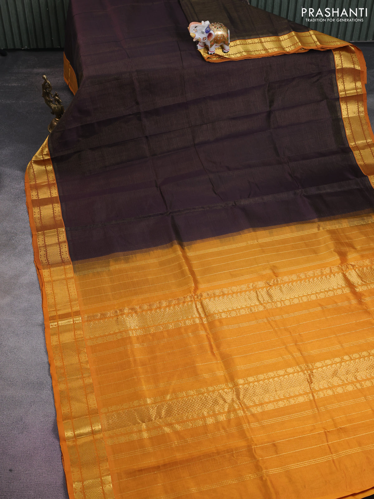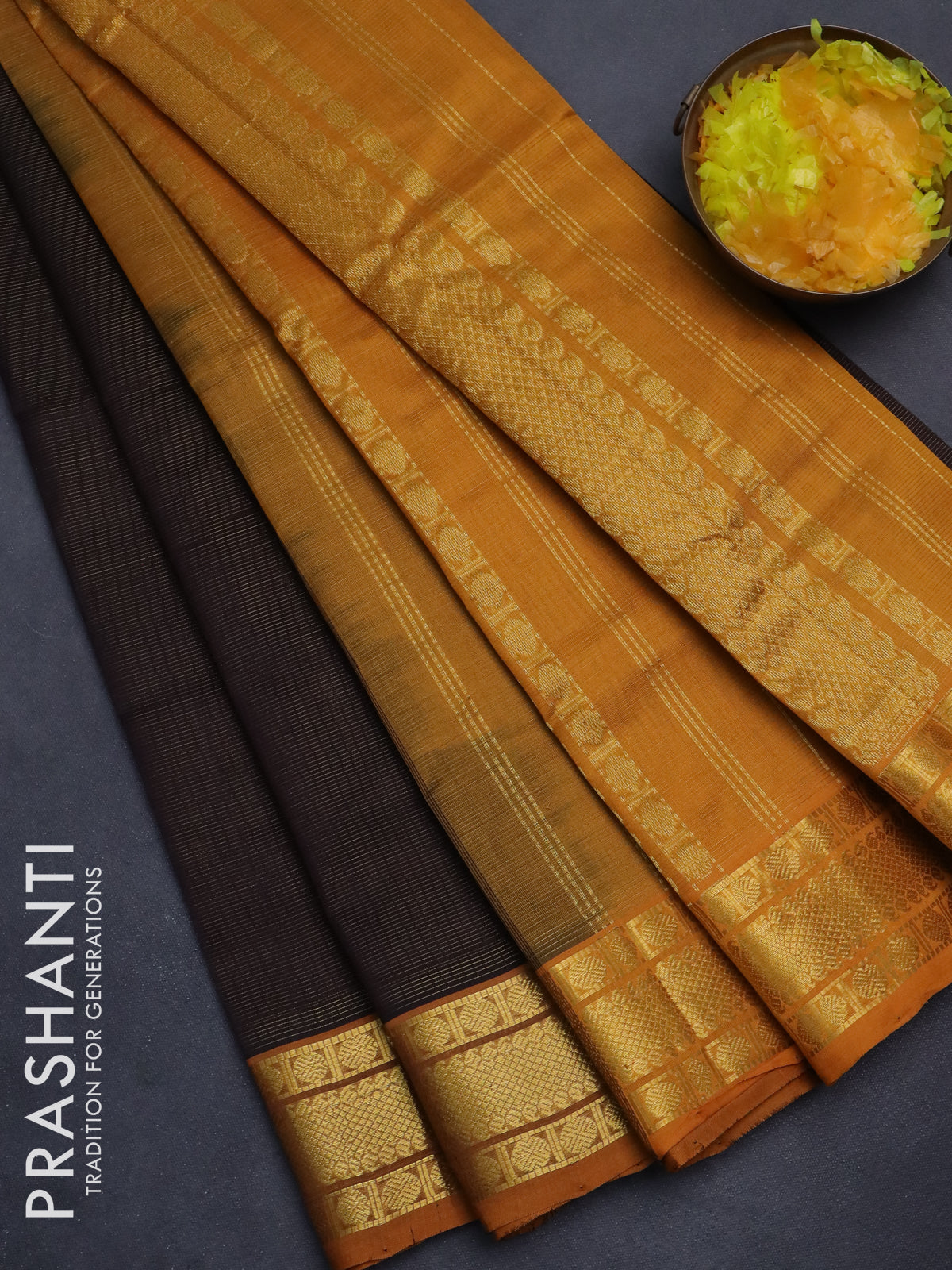 Silk cotton saree coffee brown and mustard yellow with allover vairaosi pattern and zari woven border