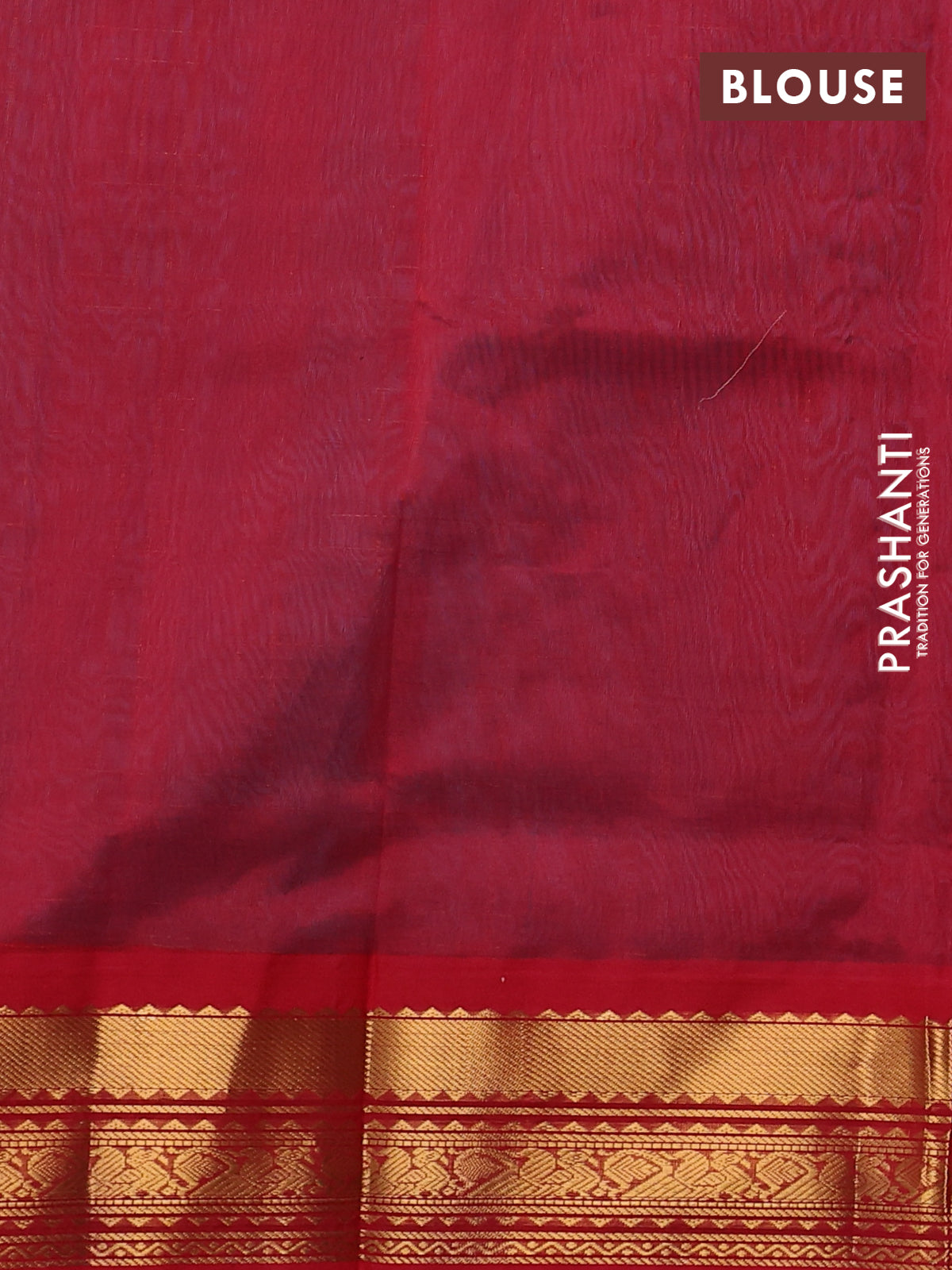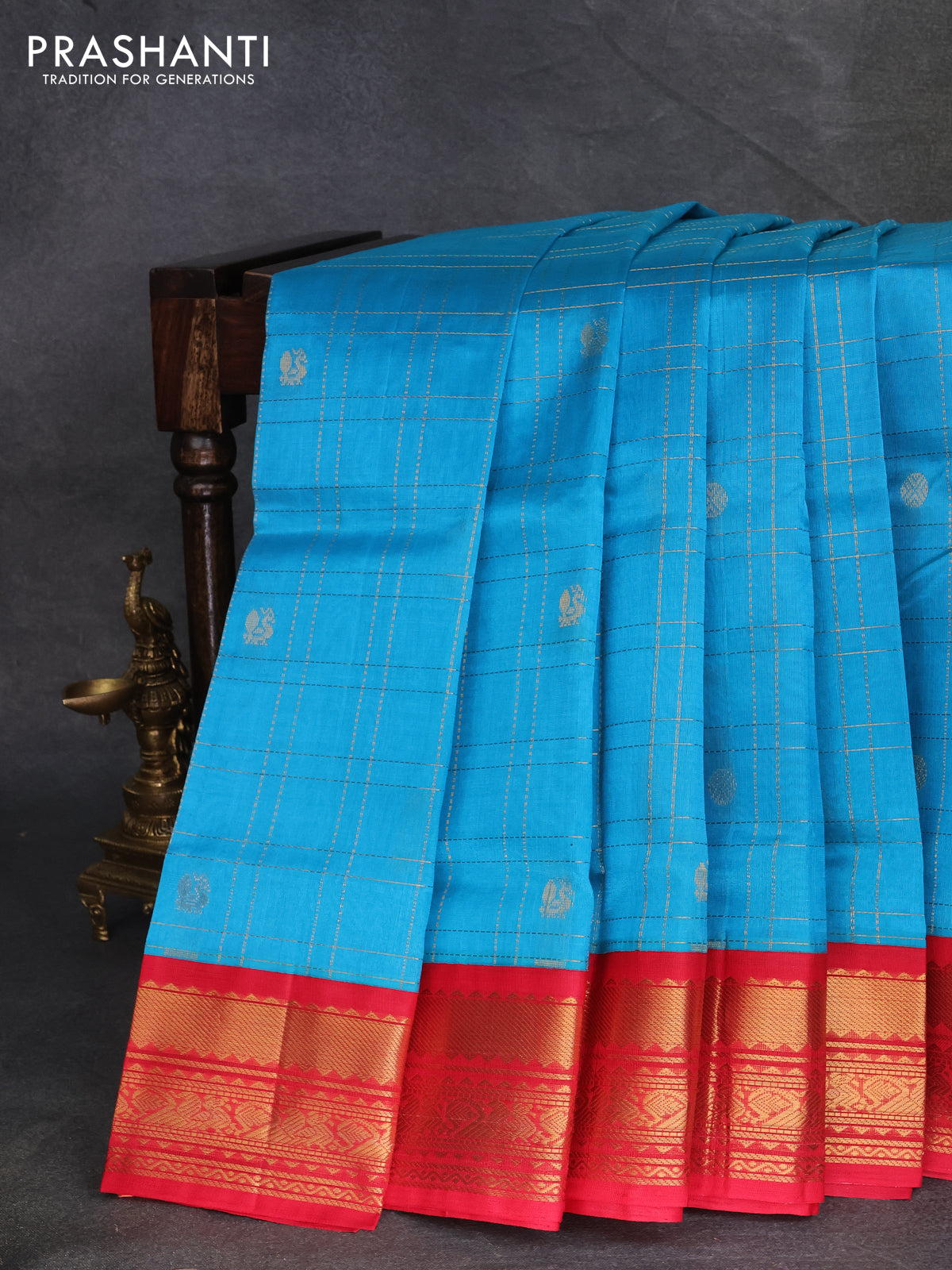 Silk cotton saree cs blue and red with allover zari checks & buttas and zari woven korvai border