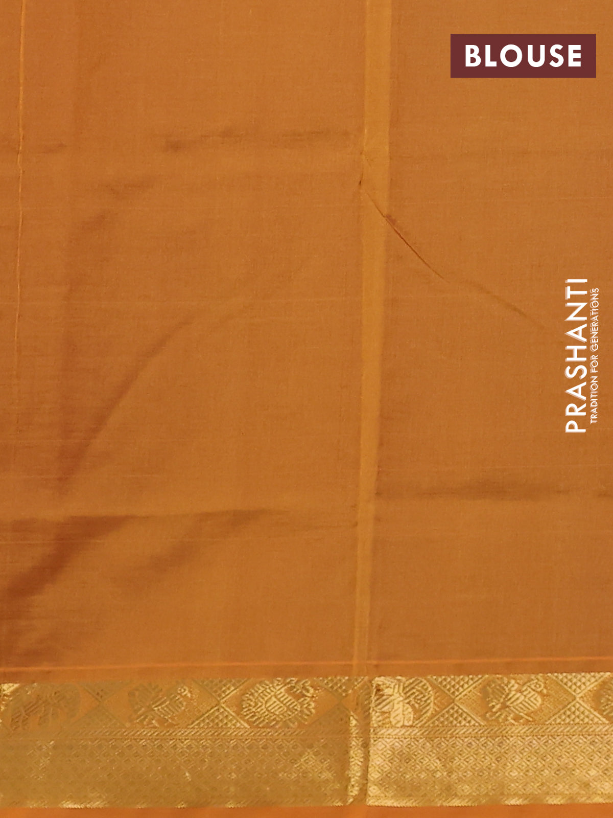 Silk cotton saree dark magenta pink and mustard yellow with plain body and zari woven border