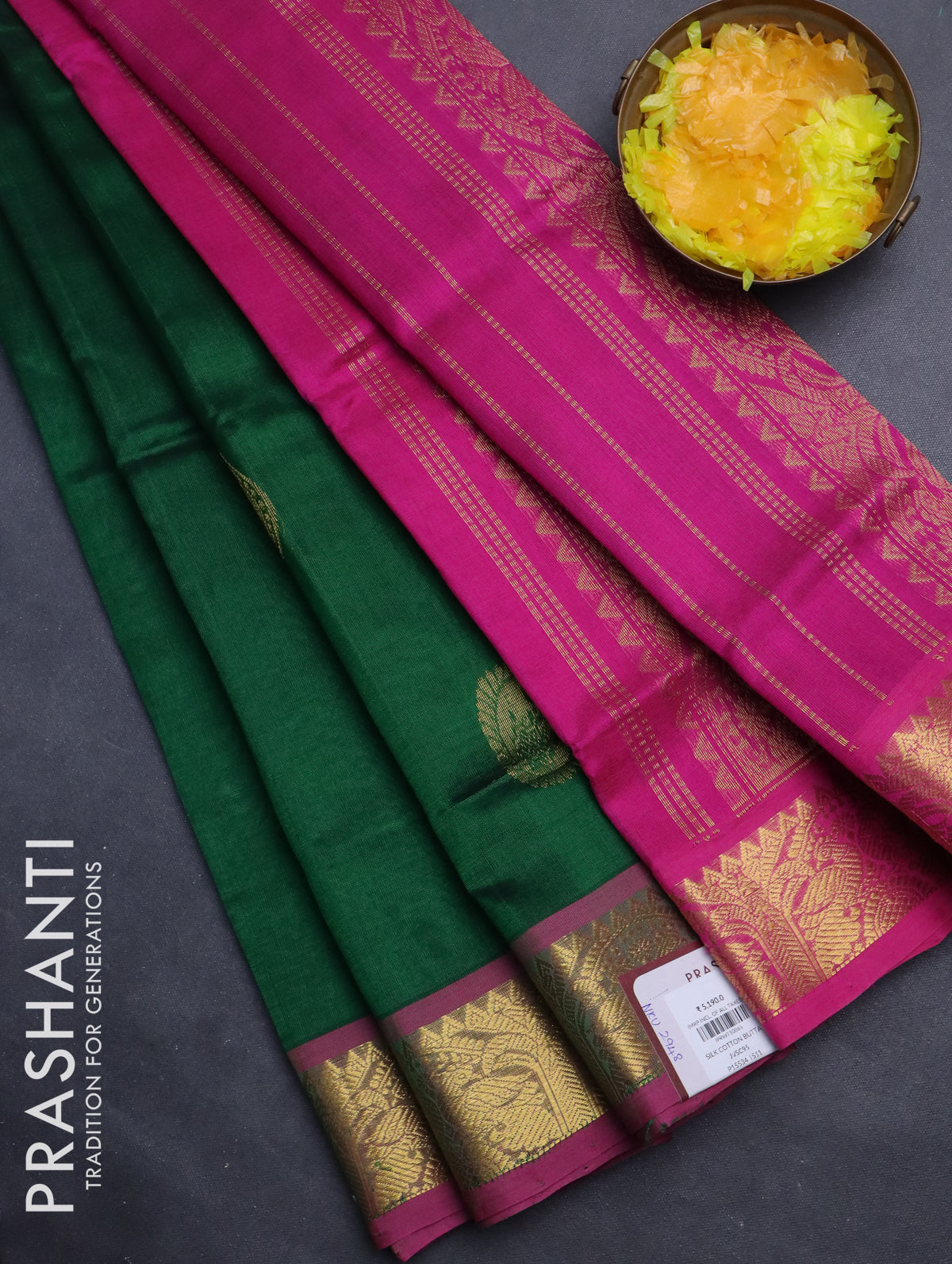 Silk cotton saree green and magenta pink with zari woven buttas and zari woven border