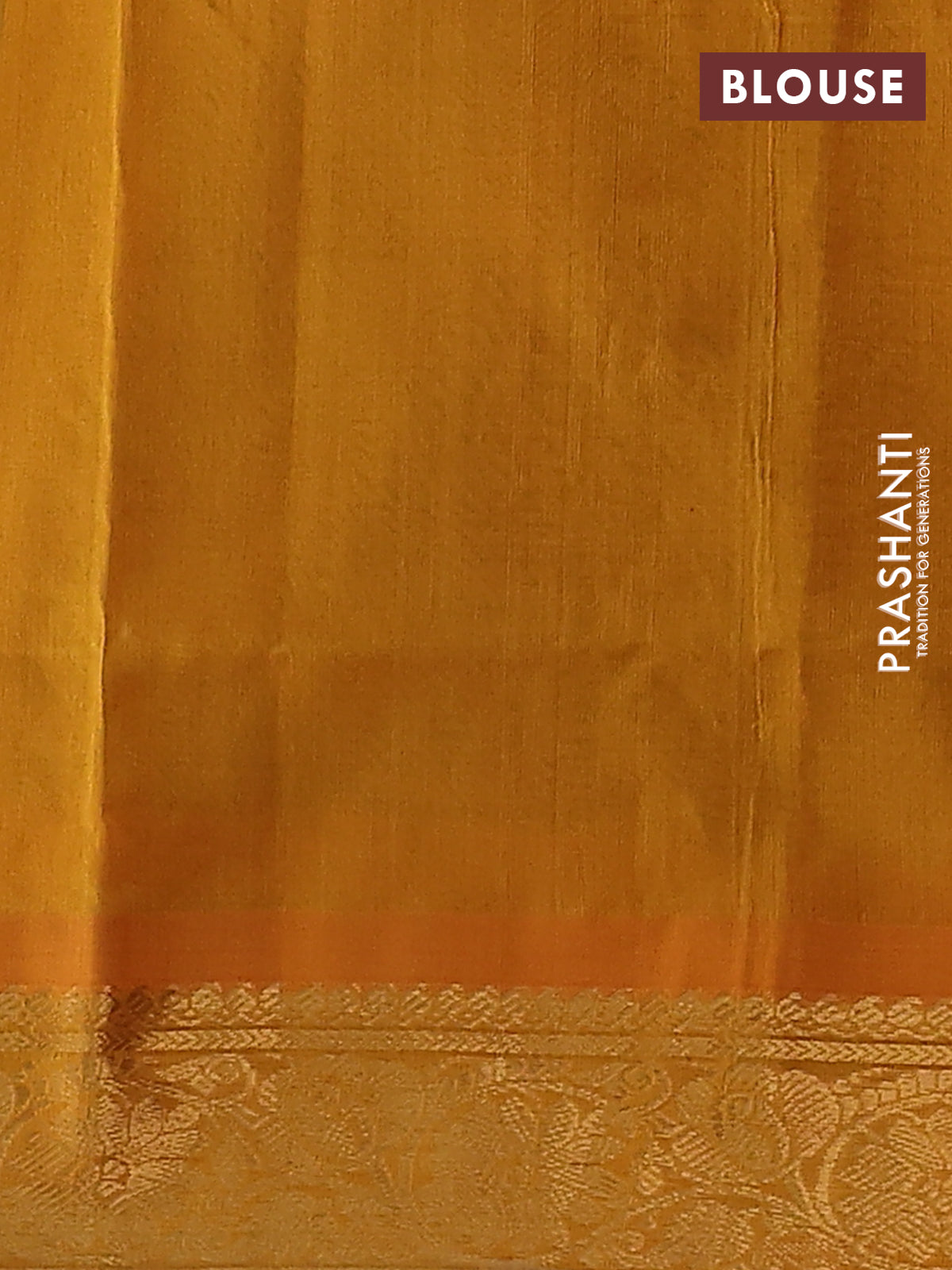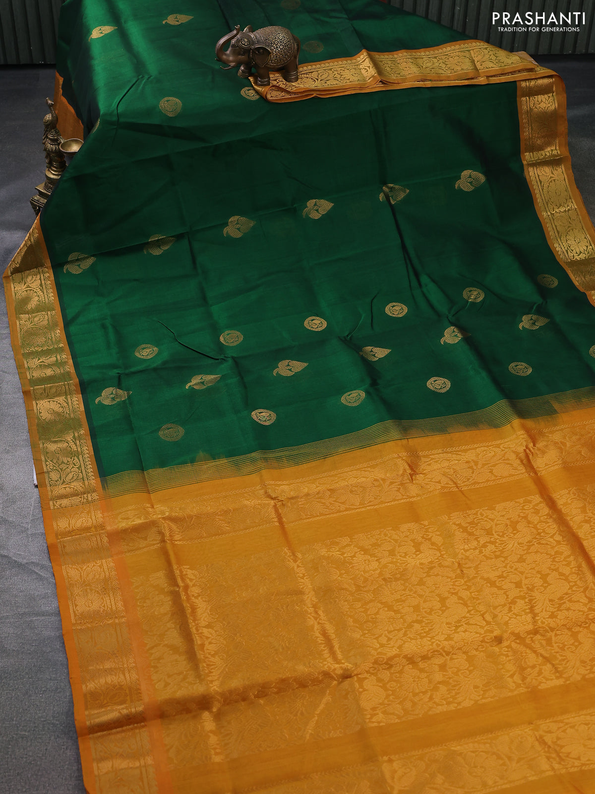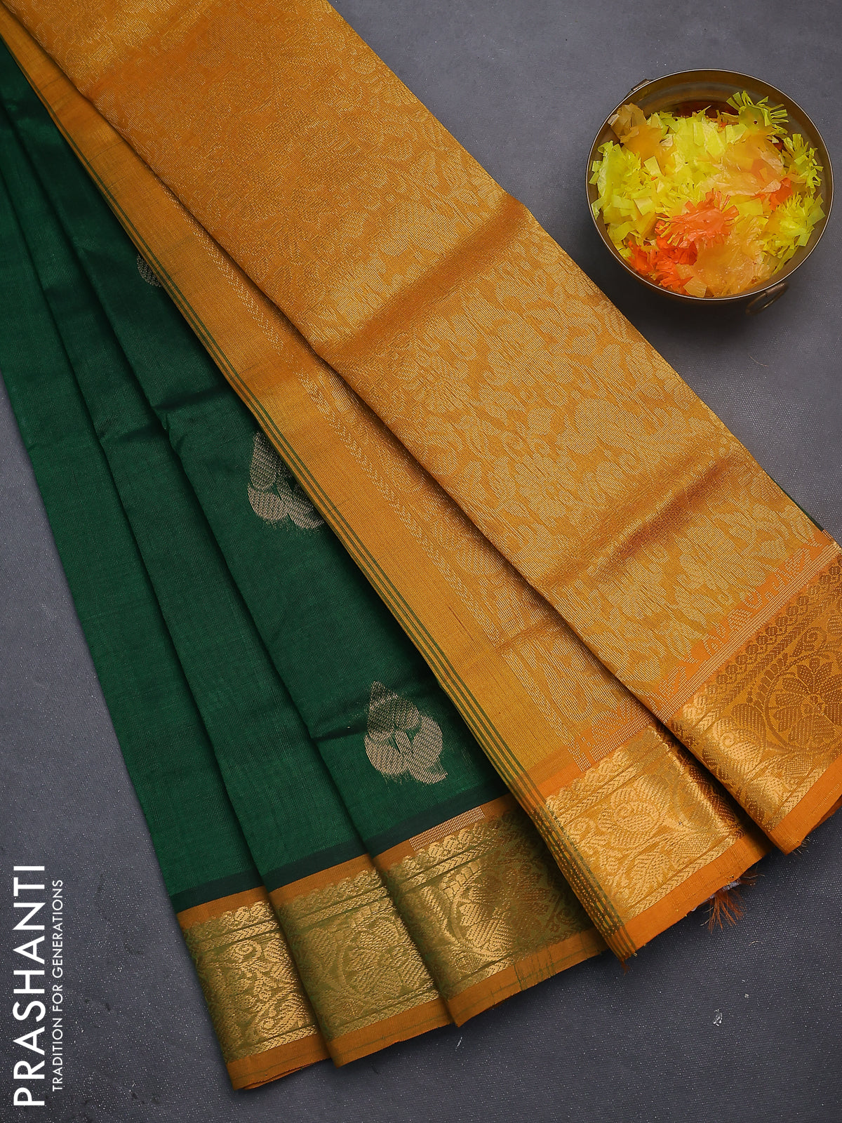 Silk cotton saree green and mango yellow with zari woven buttas and zari woven border