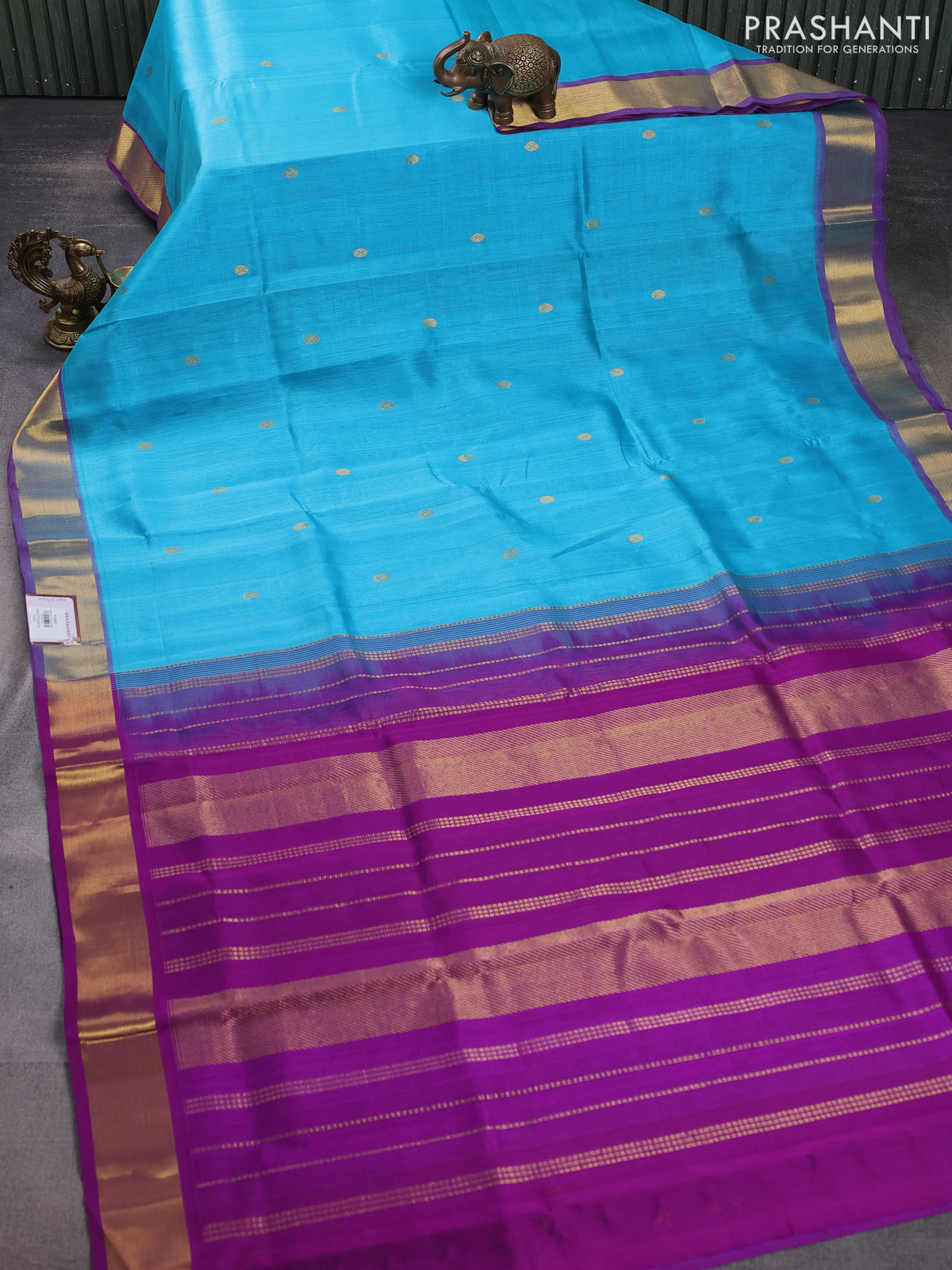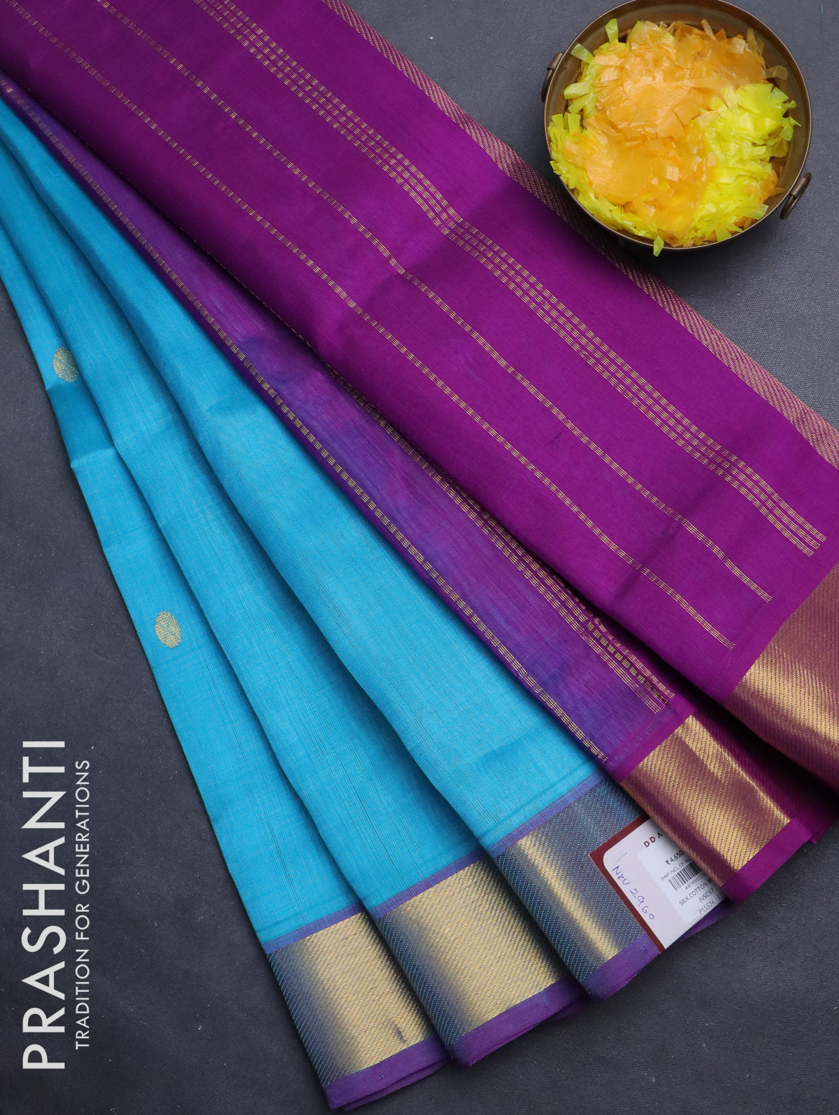 Silk cotton saree light blue and purple with zari woven buttas and zari woven border