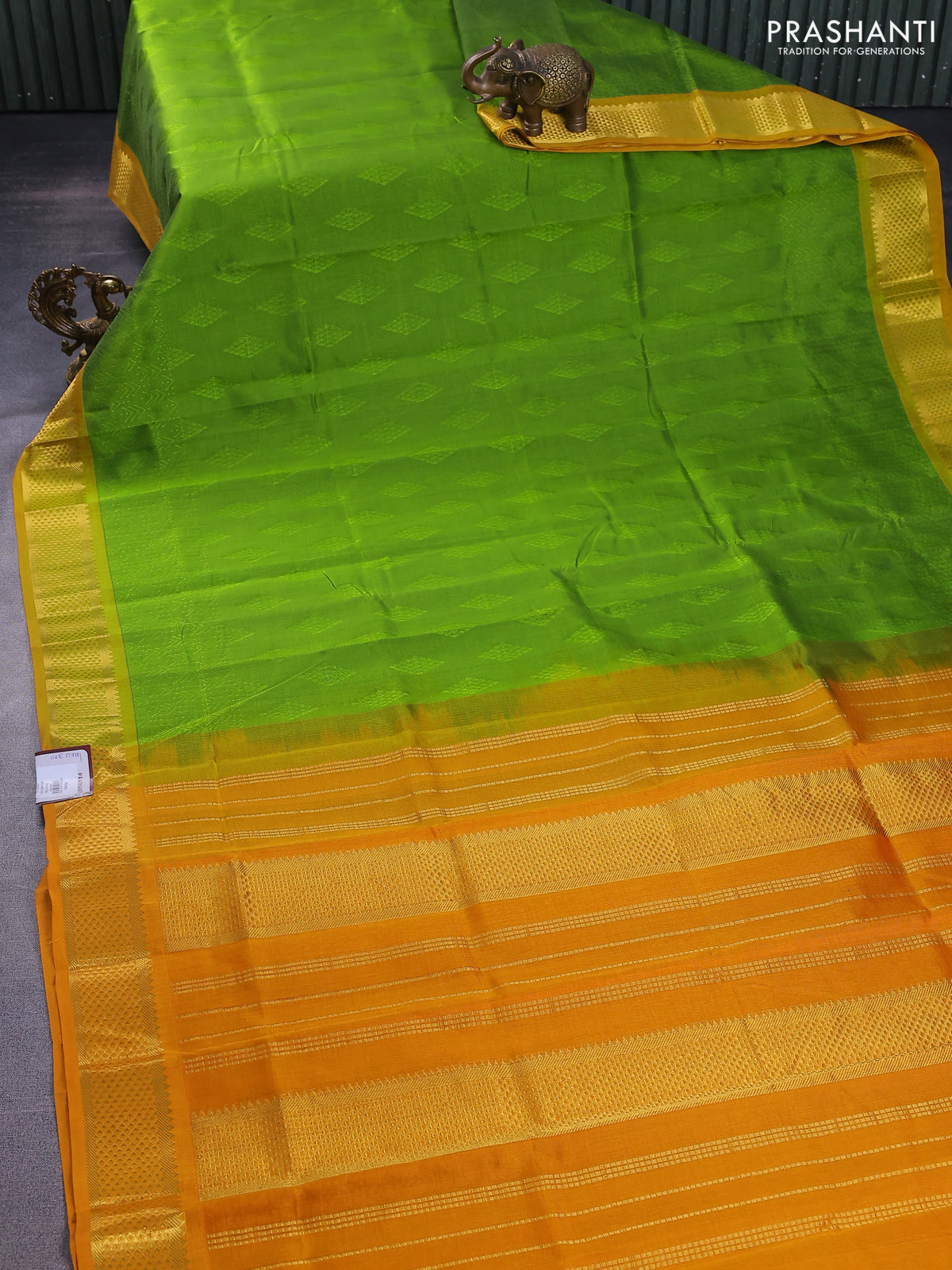 Silk cotton saree light green and mustard yellow with allover self emboss jacquard and zari woven border