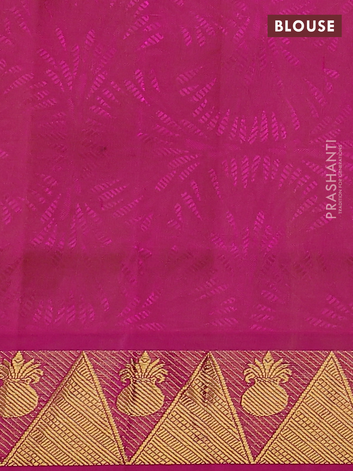 Silk cotton saree light green and pink with allover self emboss jacquard and zari woven border