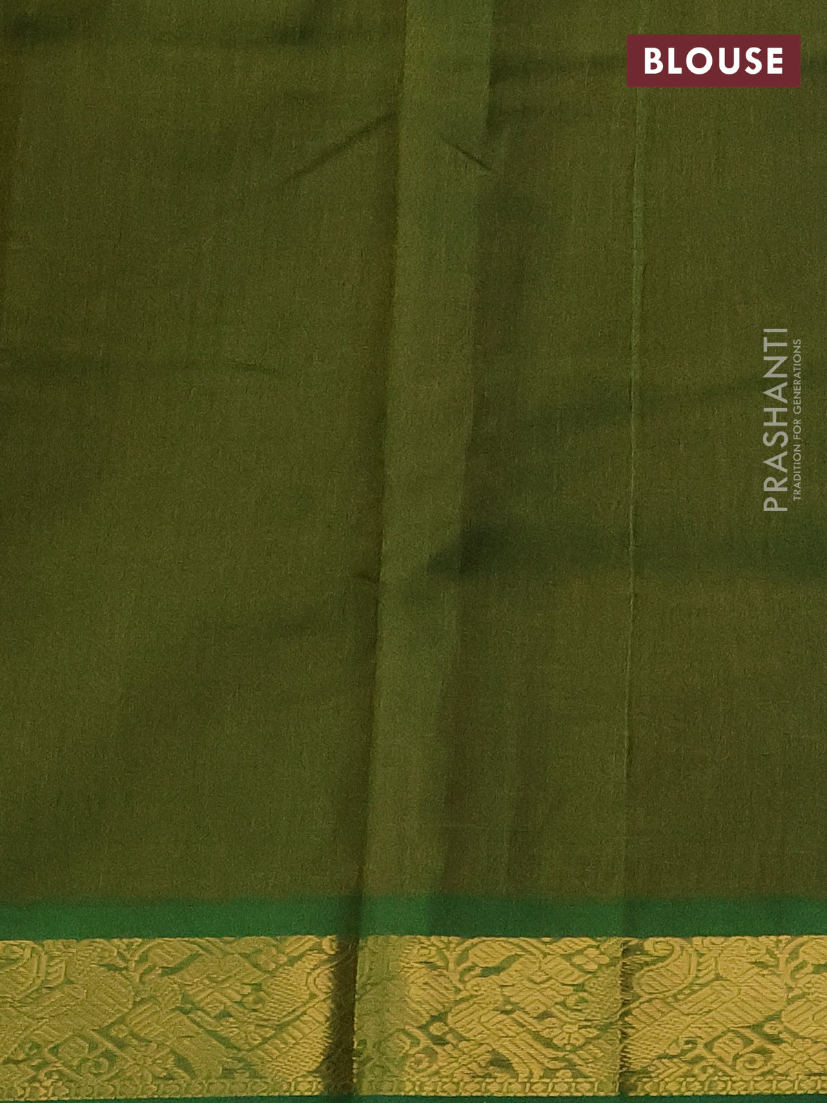 Silk cotton saree maroon and mehendi green with plain body and zari woven border