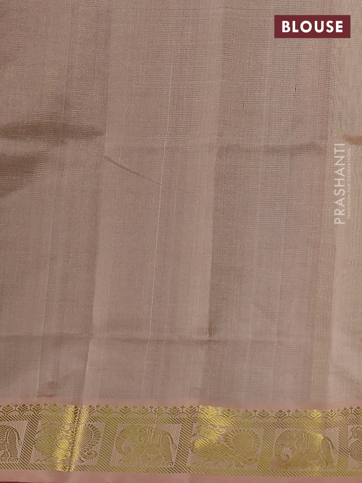 Silk cotton saree maroon and sandal with allover vairosi pattern and annam & elephant zari woven border