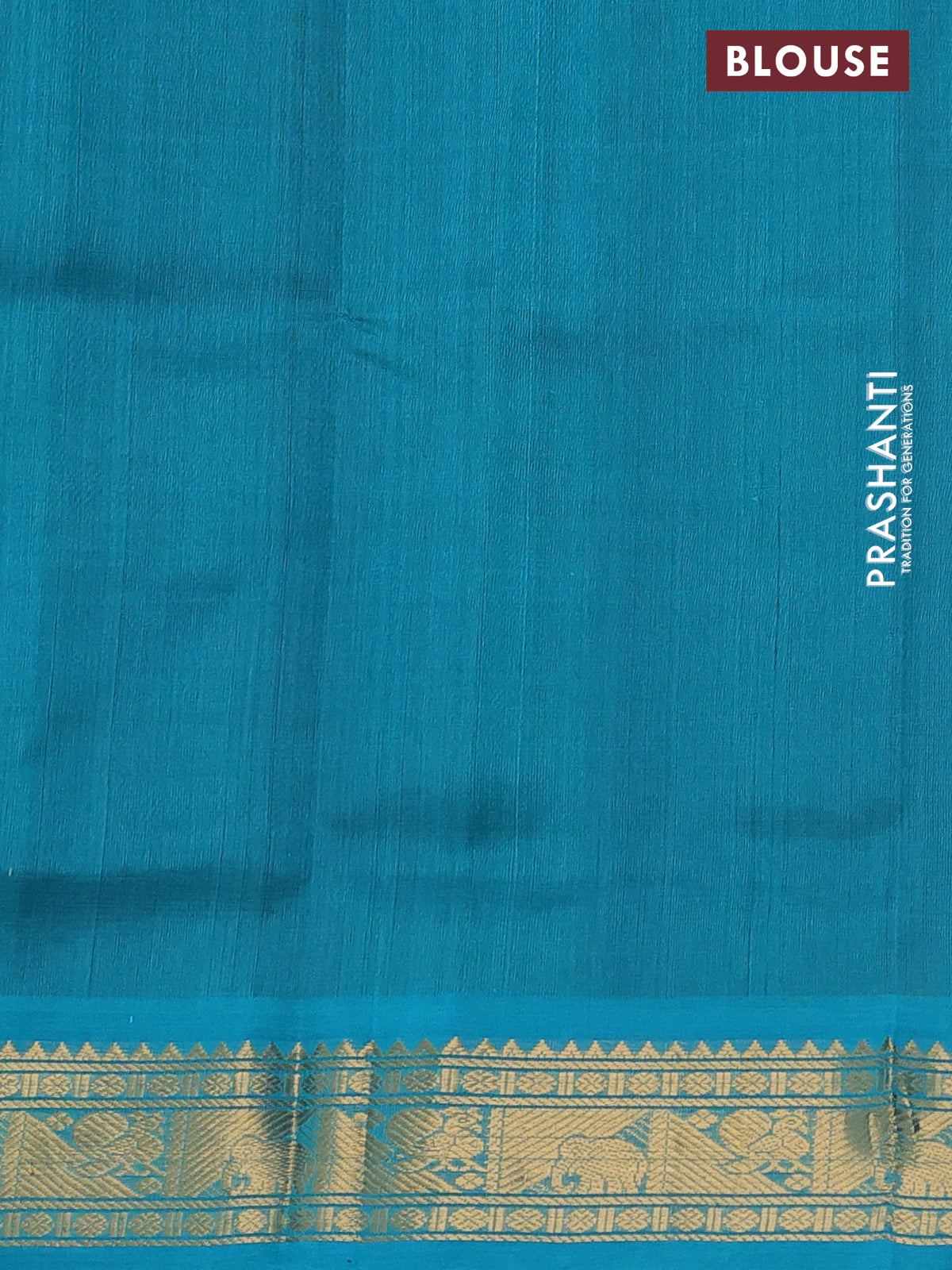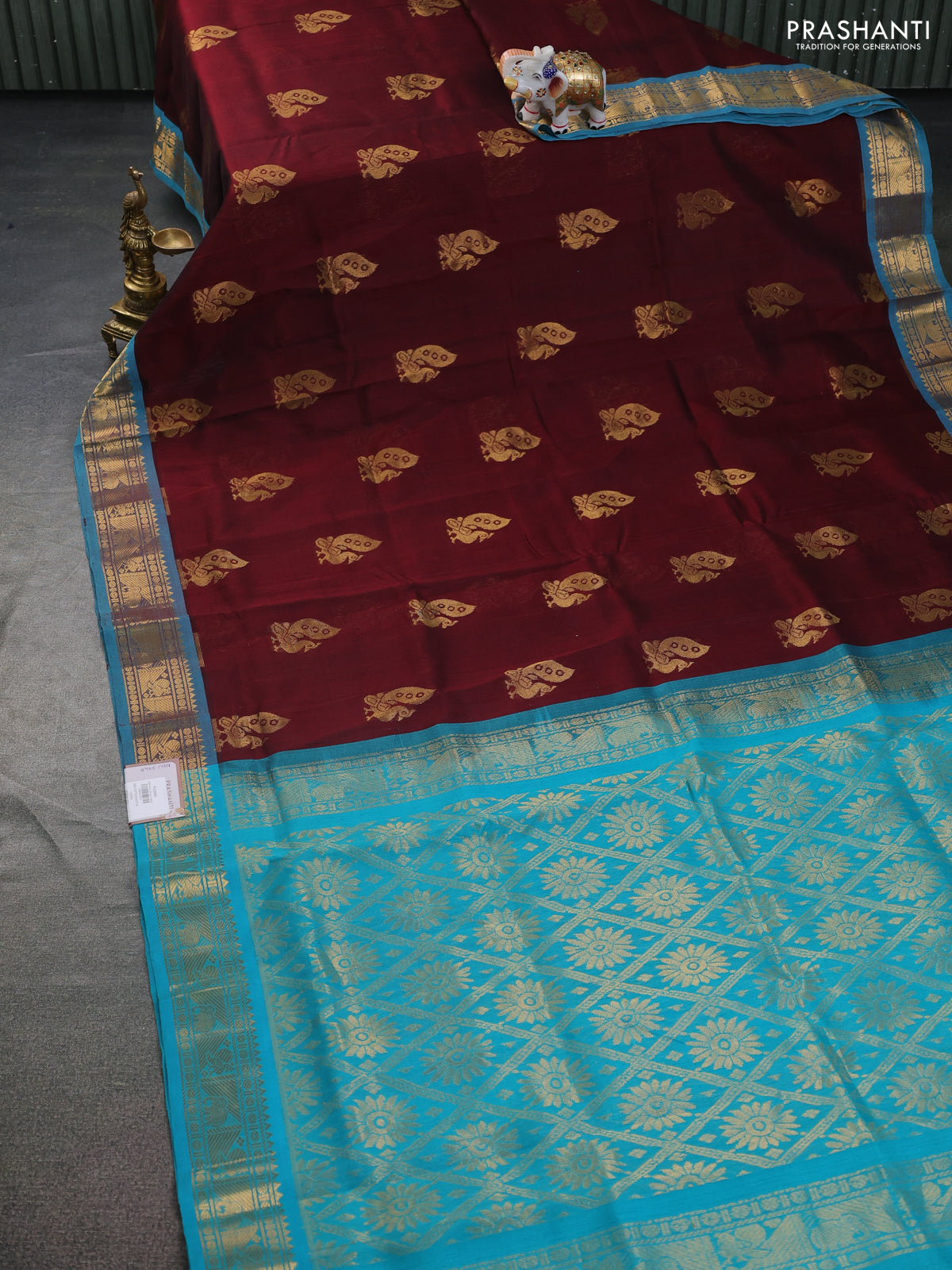 Silk cotton saree maroon and teal blue with annam zari woven buttas and zari woven border