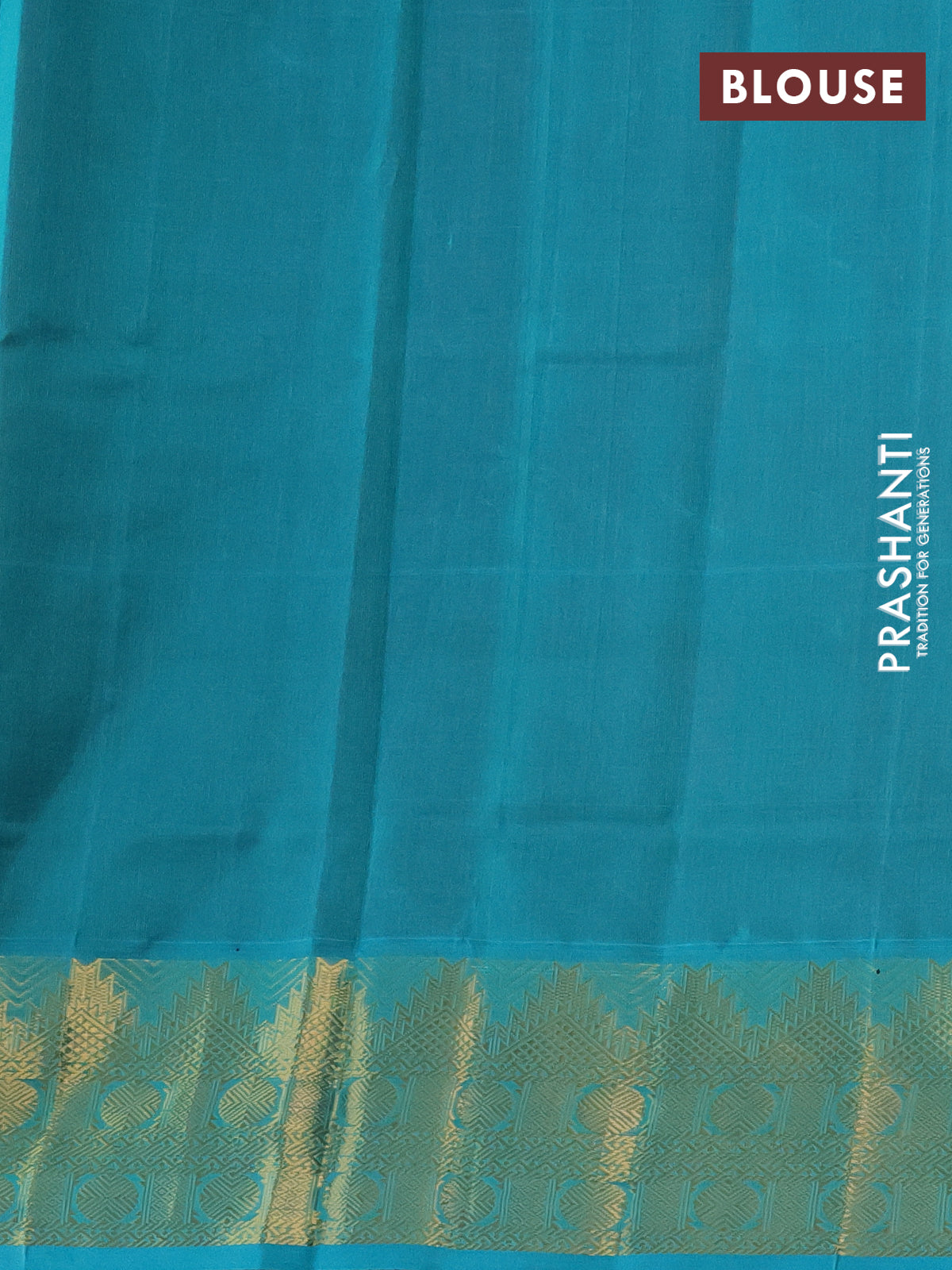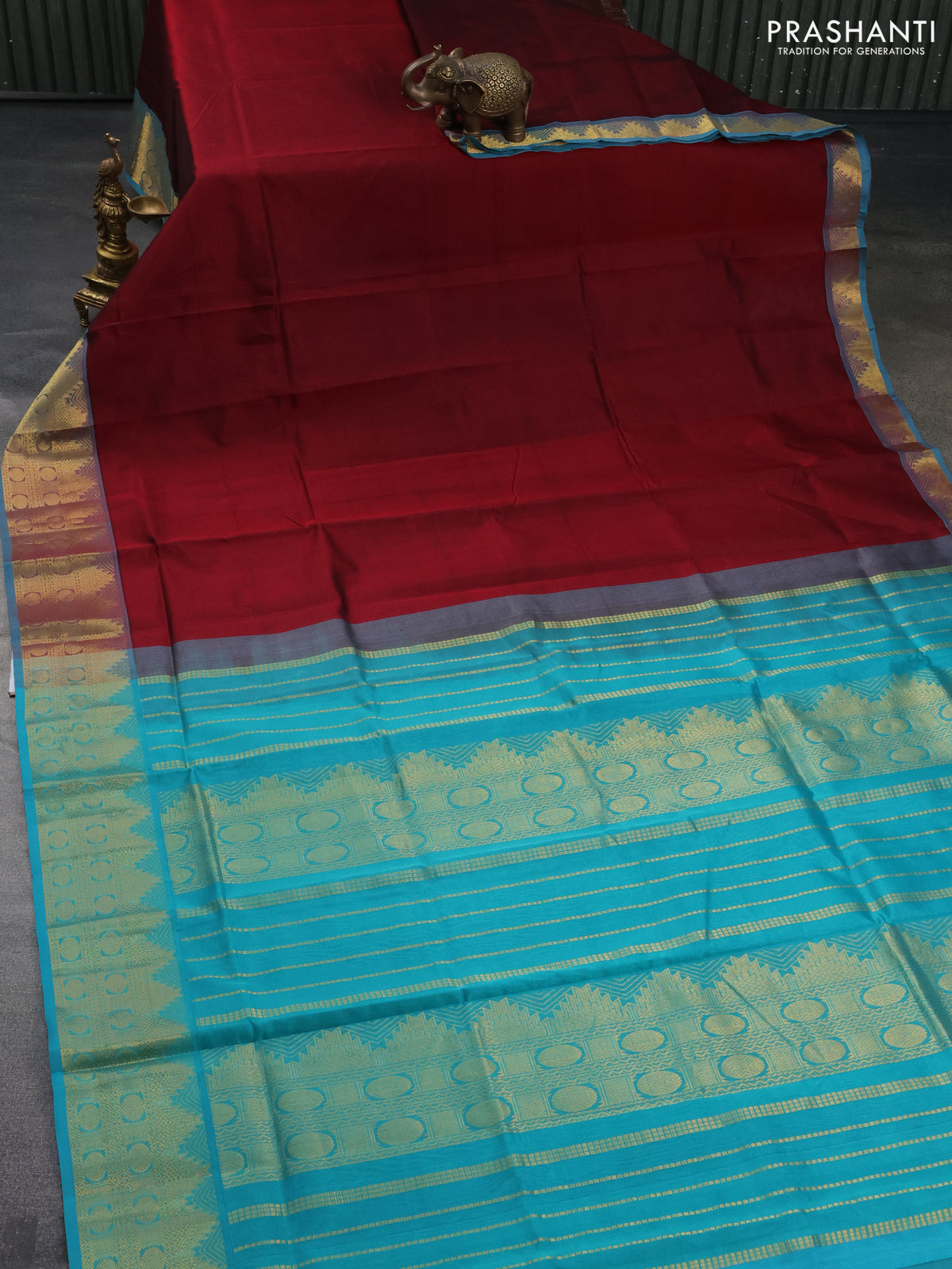 Silk cotton saree maroon and teal blue with plain body and zari woven border
