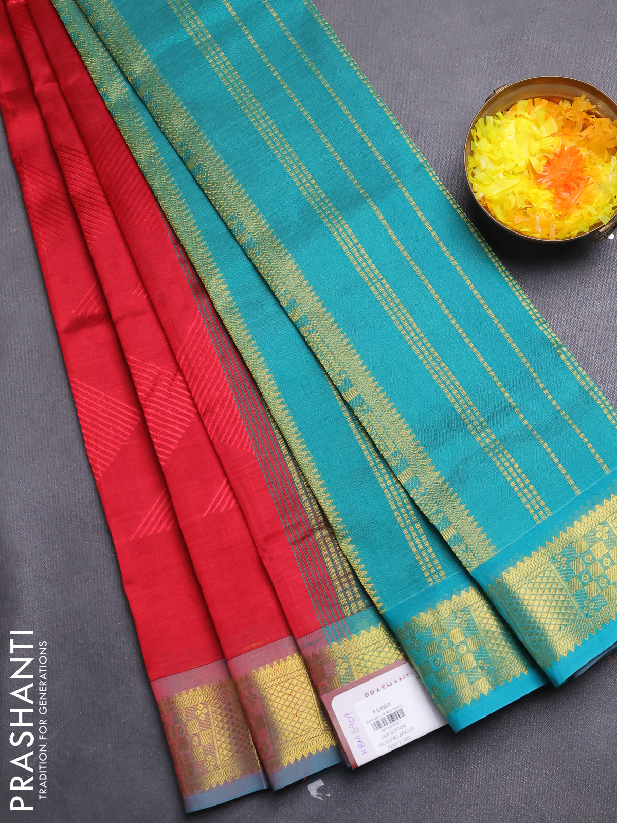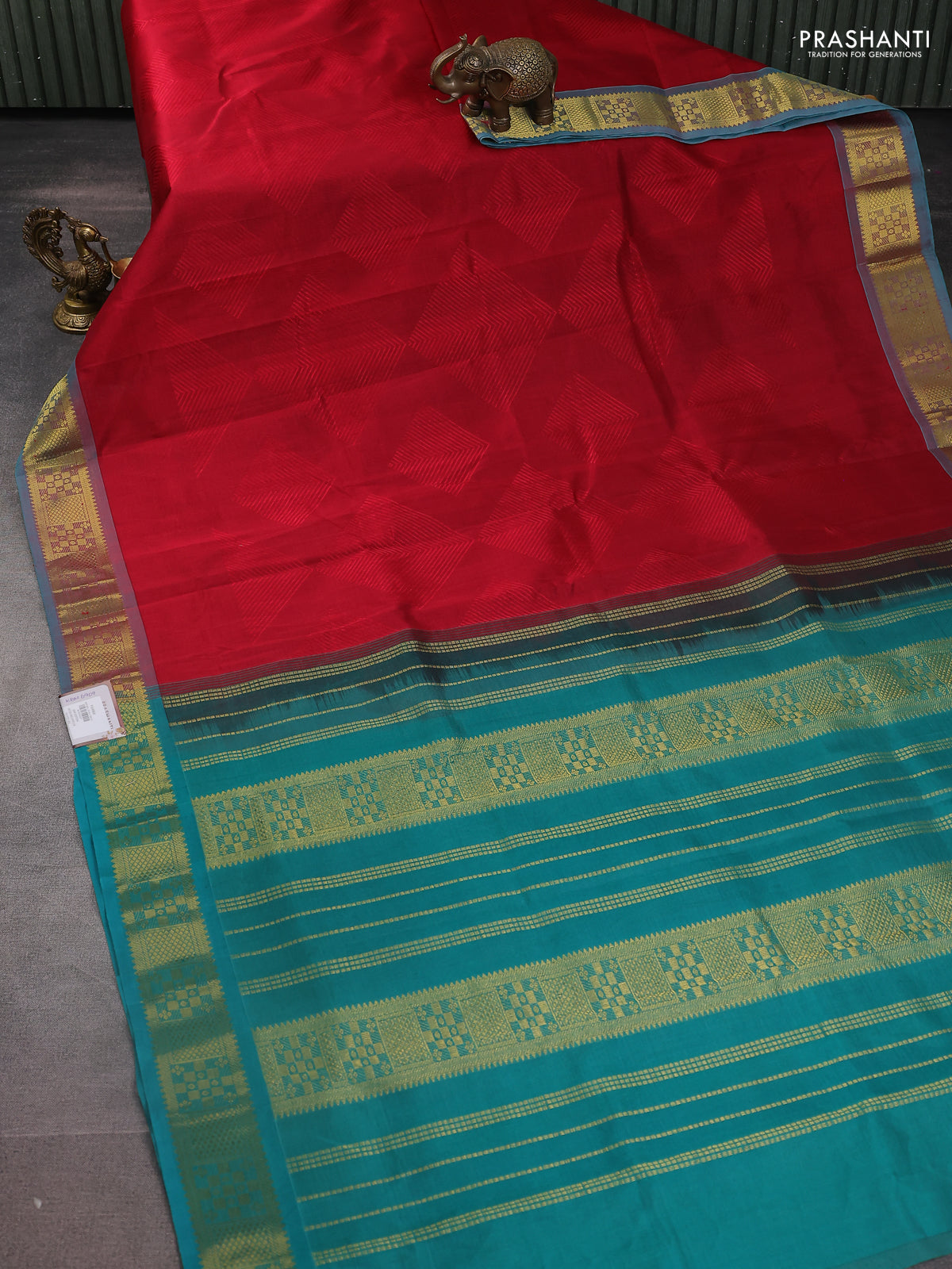 Silk cotton saree maroon and teal green with allover self emboss jacquard and zari woven border