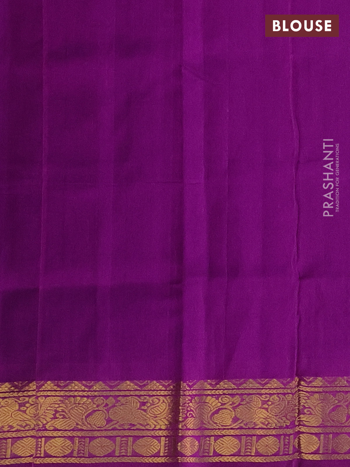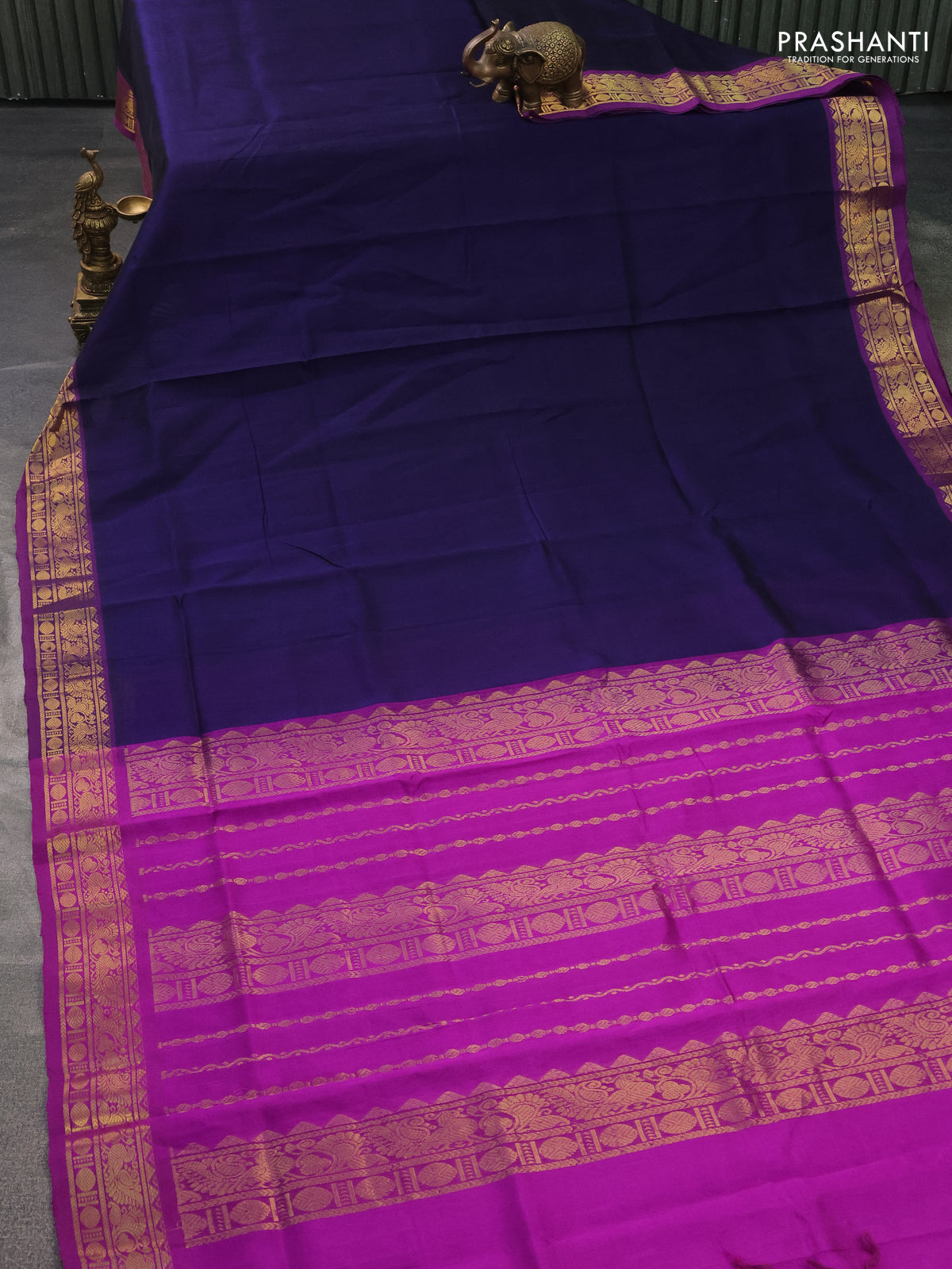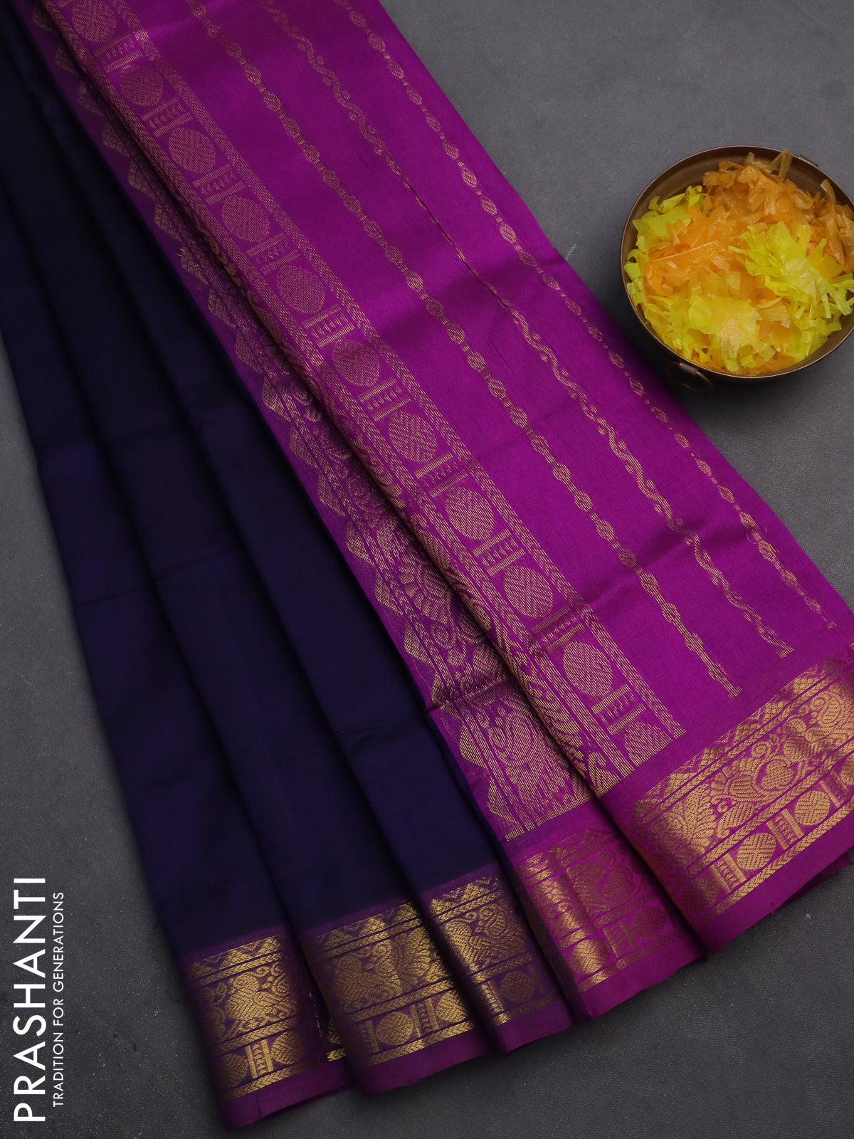 Silk cotton saree navy blue and purple with plain body and zari woven border