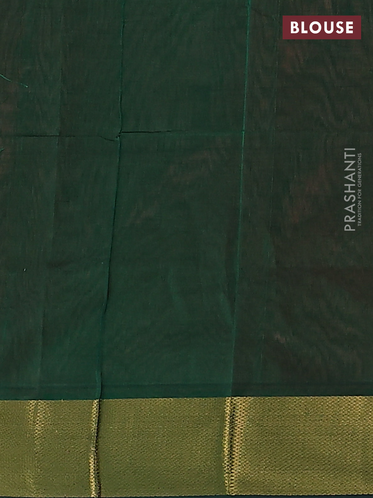 Silk Cotton saree peach pink and green with plain body and zari woven border