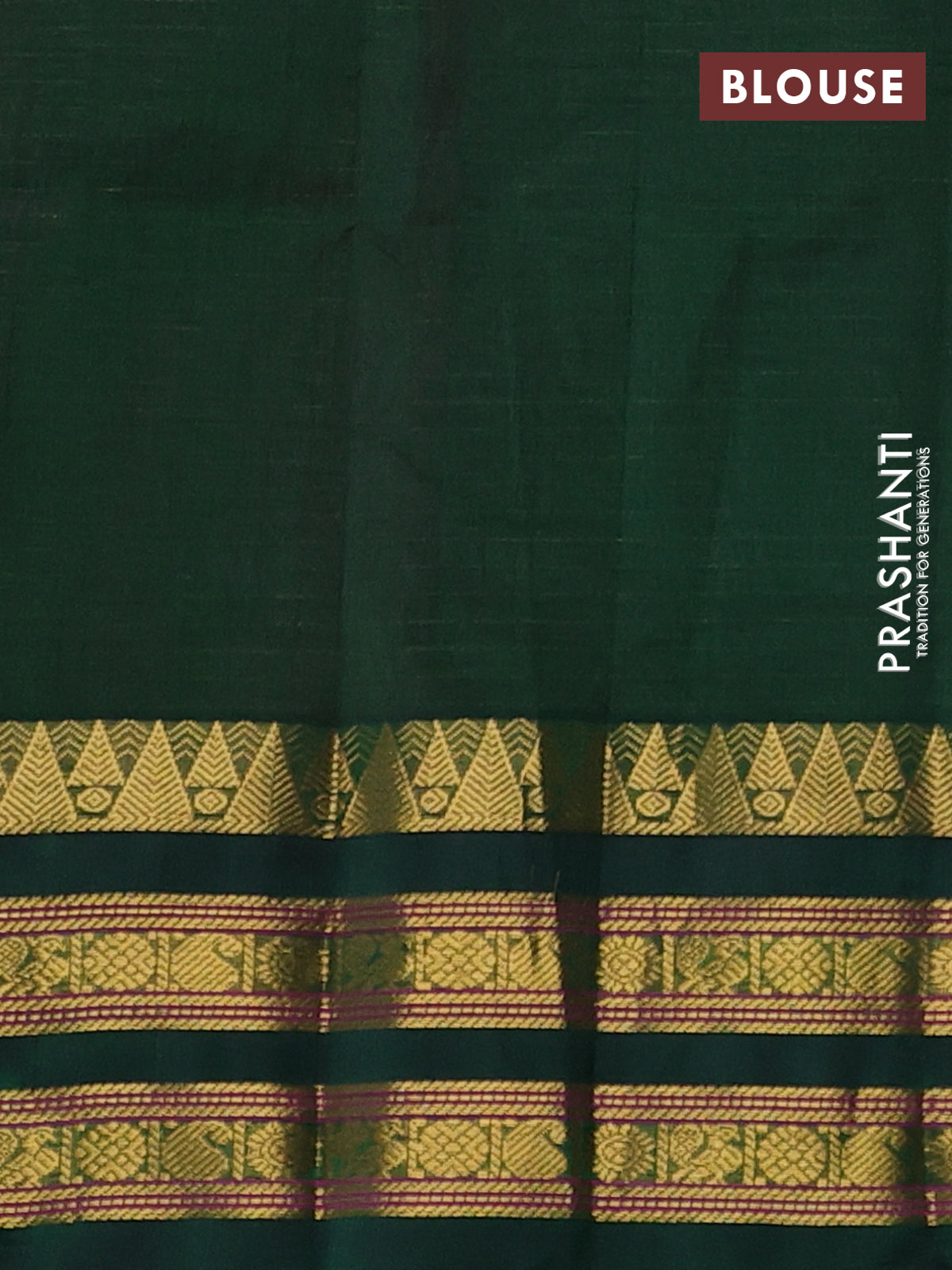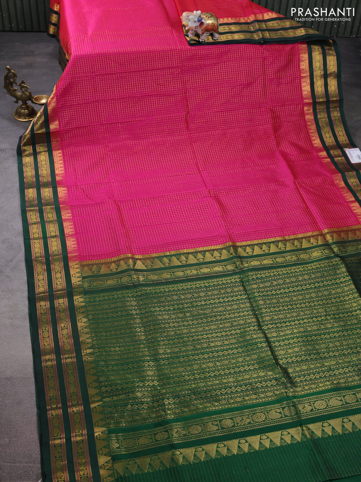 Silk cotton saree pink and green with allover small zari checked pattern and temple design zari woven korvai border