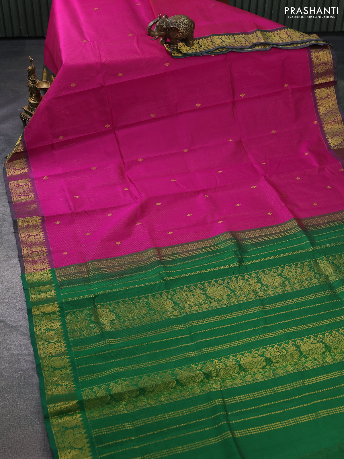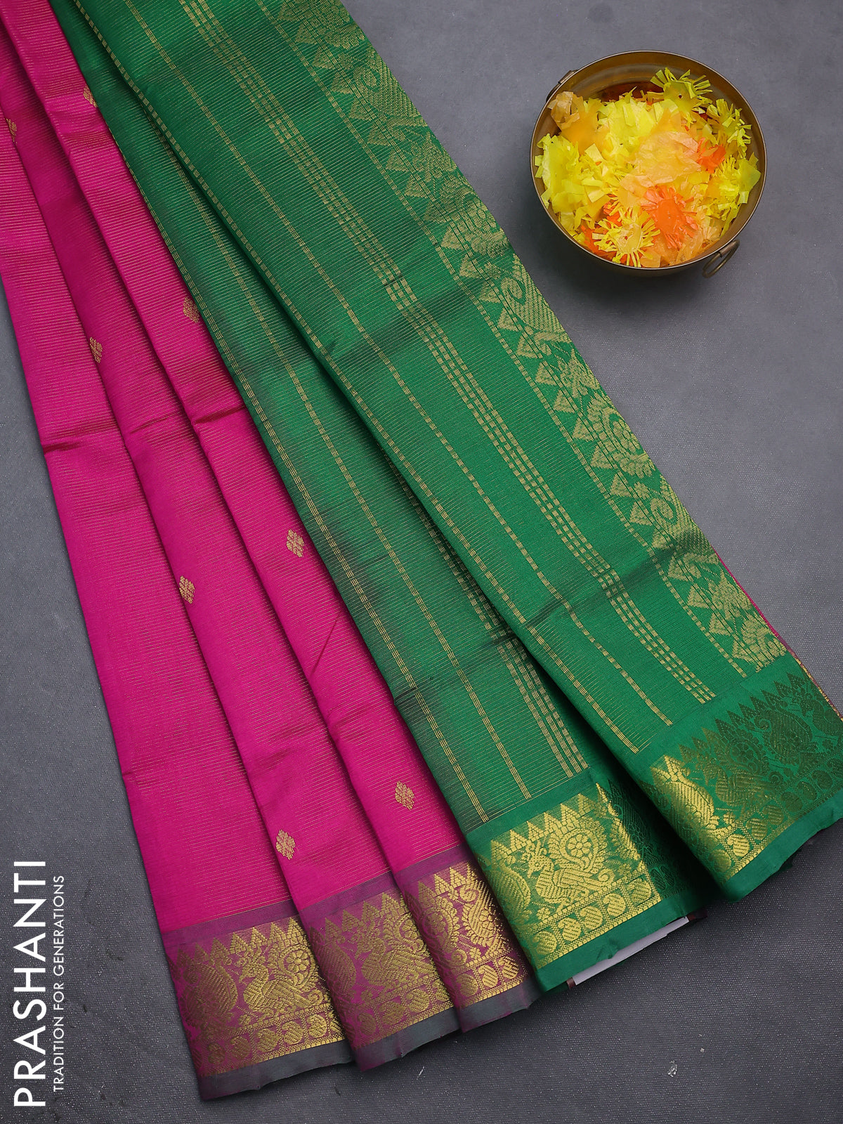 Silk cotton saree pink and green with allover vairosi weaves & buttas and rich zari woven border