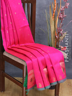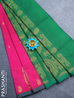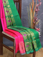 Silk cotton saree pink and green with zari woven buttas and piping border