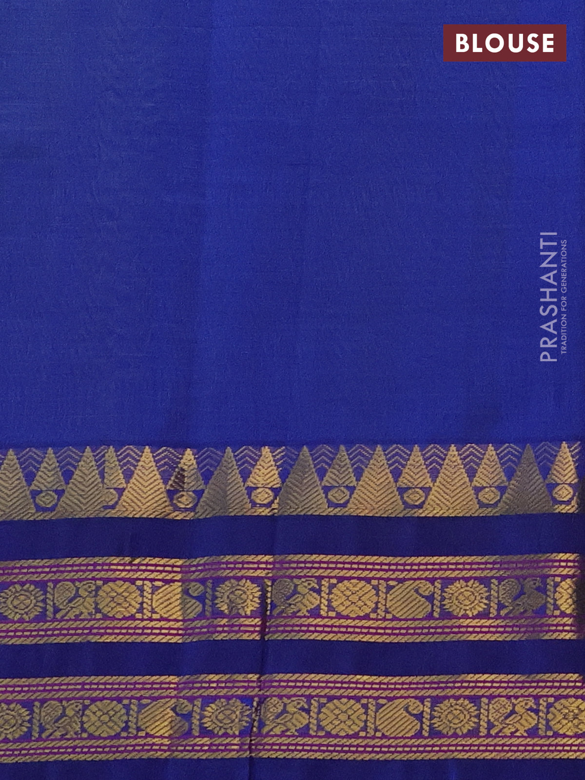 Silk cotton saree pista green and blue with allover small zari checked pattern and temple design zari woven korvai border