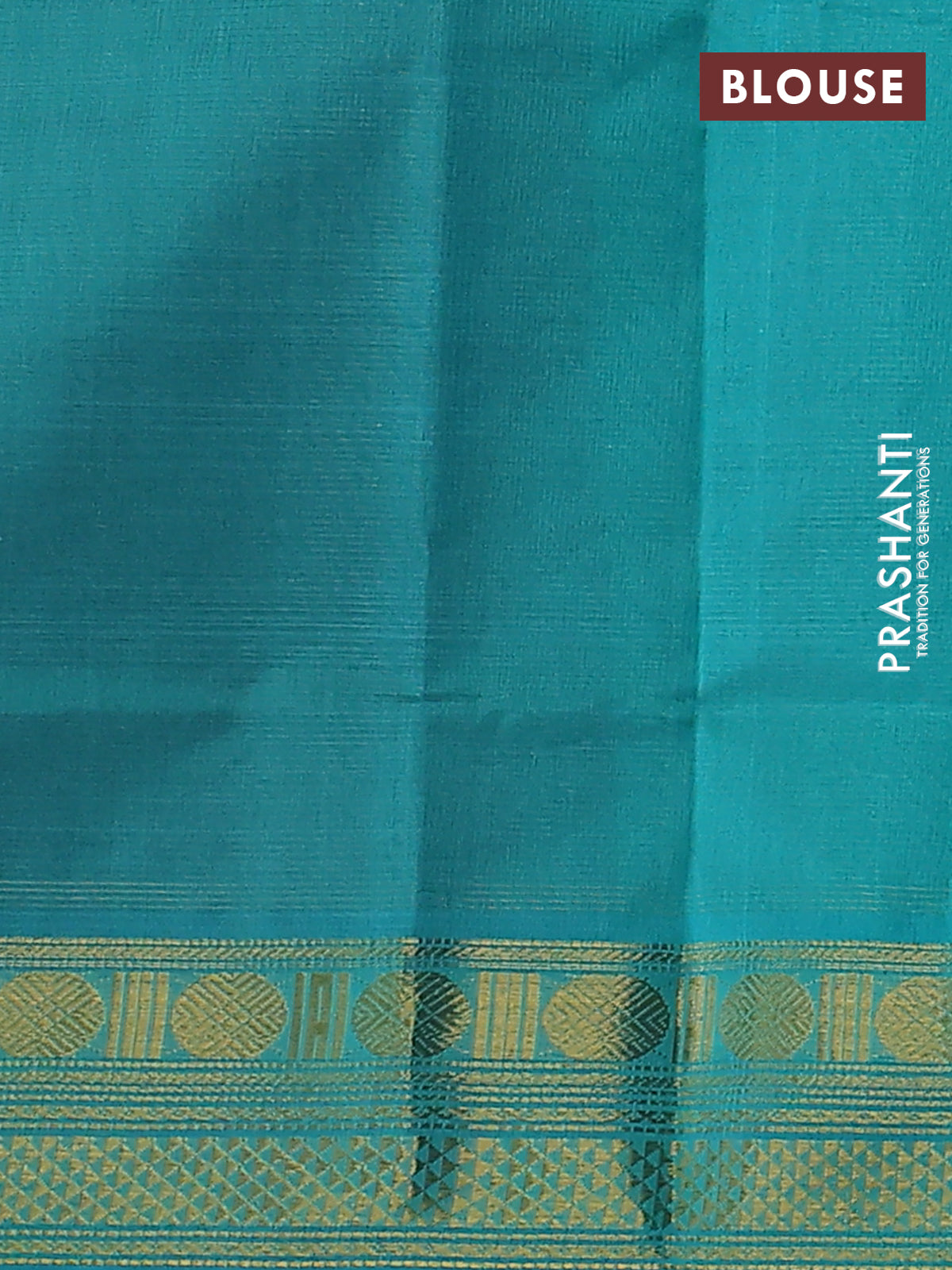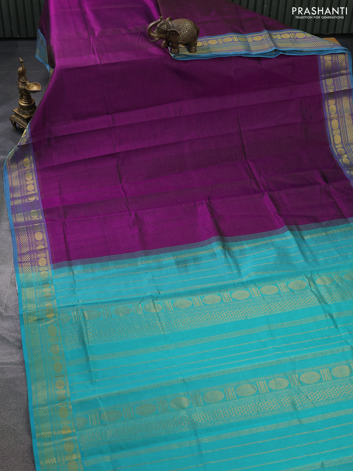 Silk cotton saree purple and teal blue with allover vairosi pattern and zari woven border