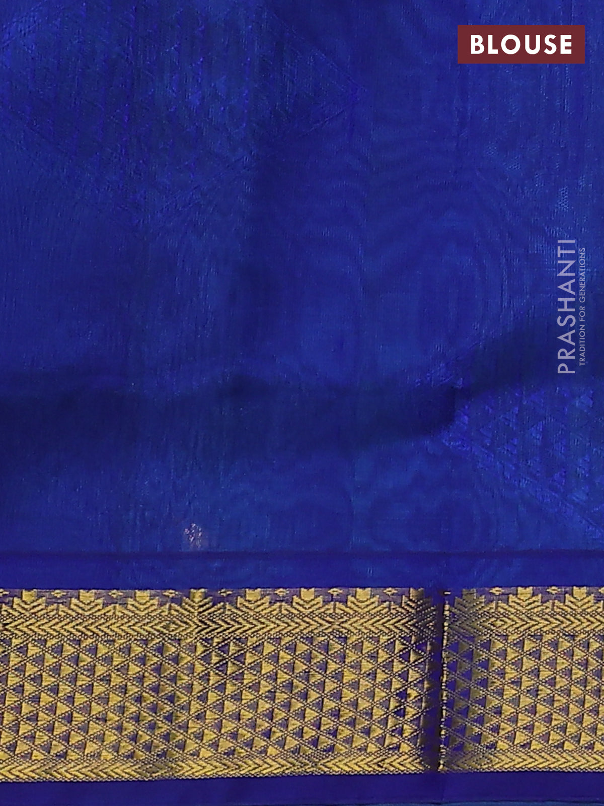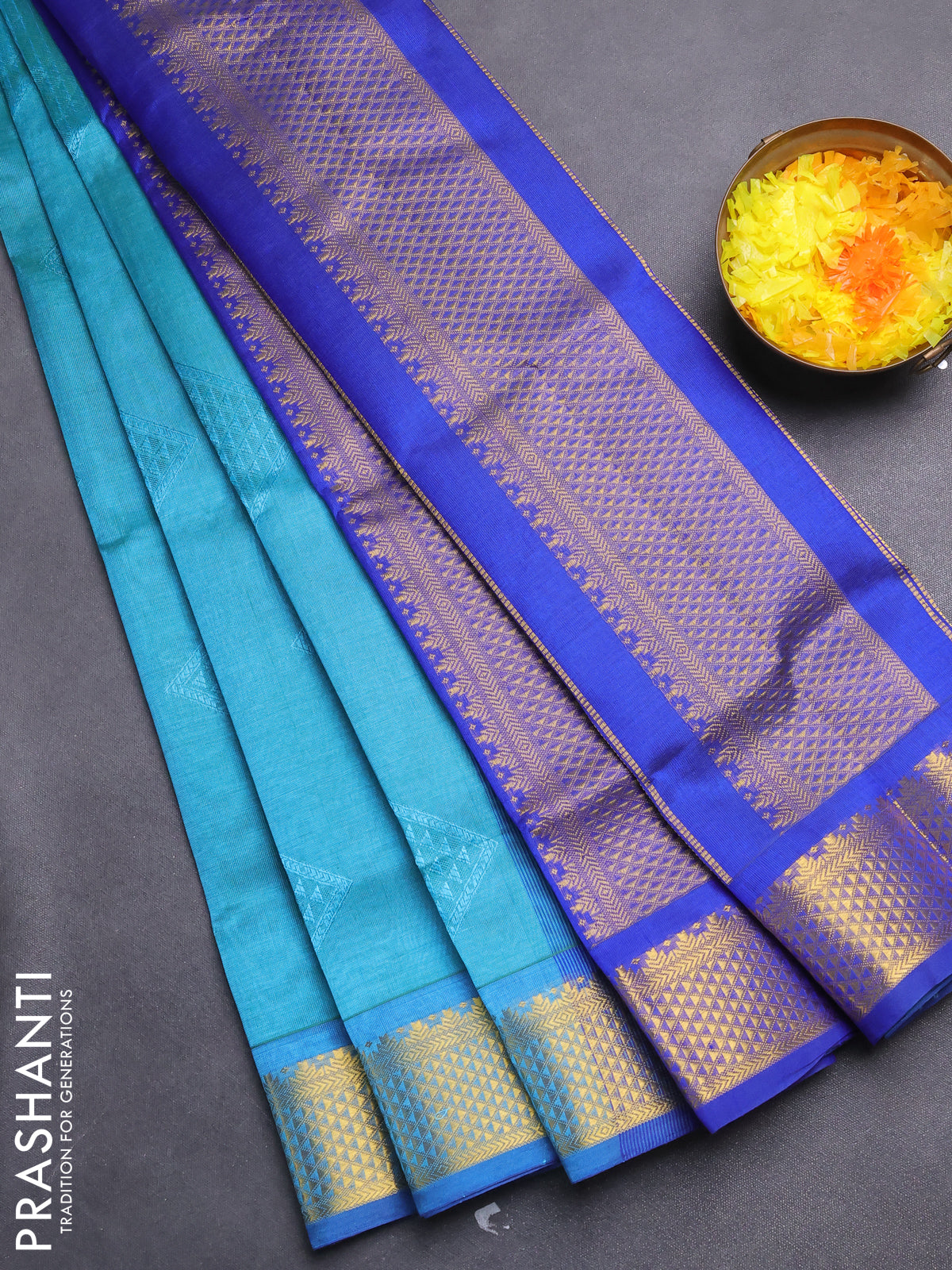 Silk cotton saree teal blue and blue with allover self emboss jacquard and zari woven border