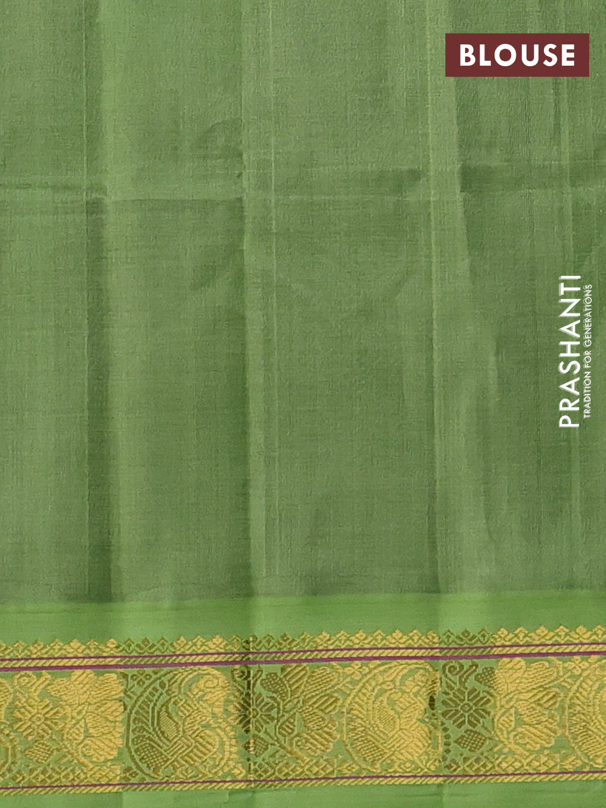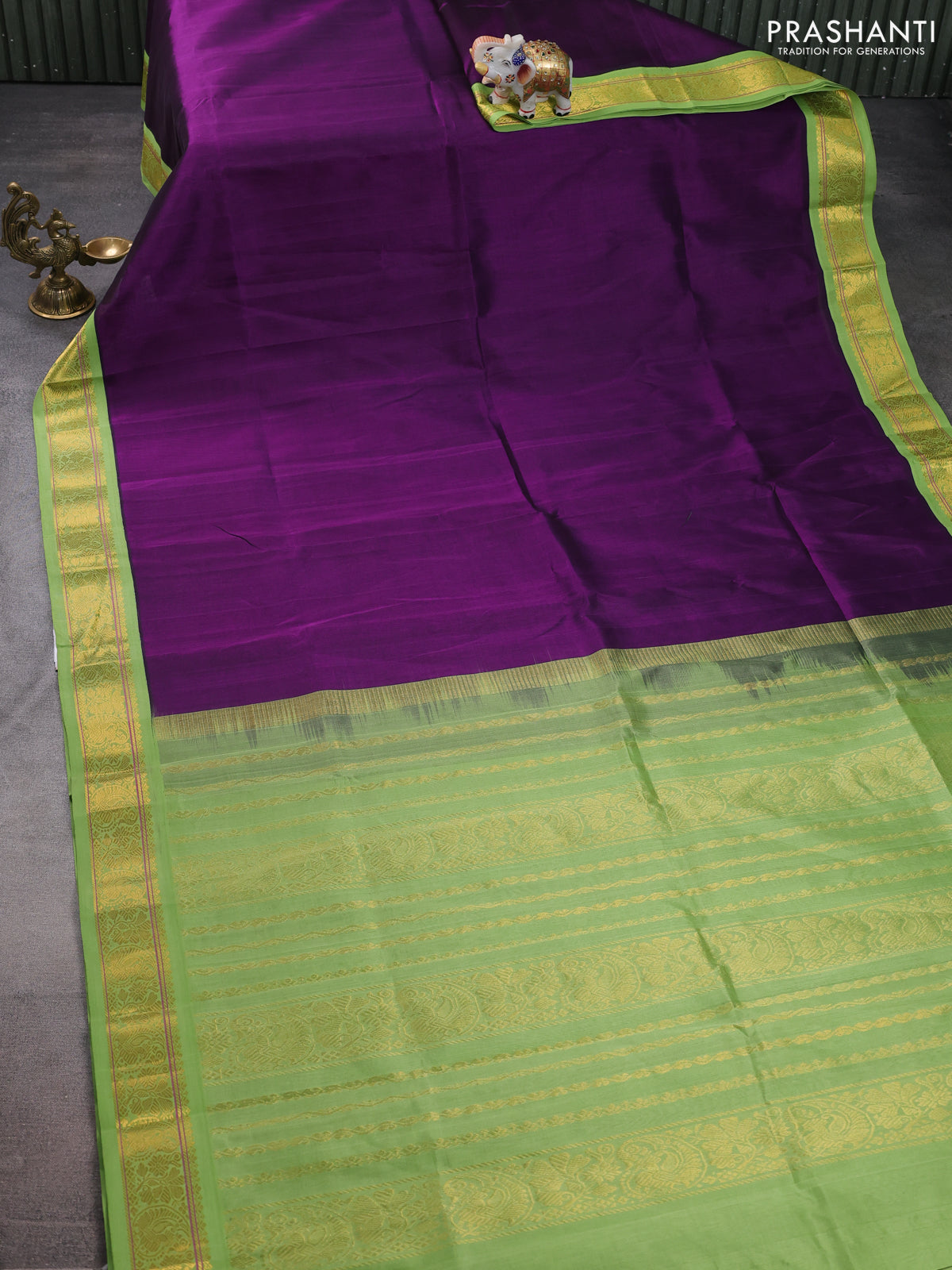 Silk cotton saree violet and light green with plain body and zari woven korvai border