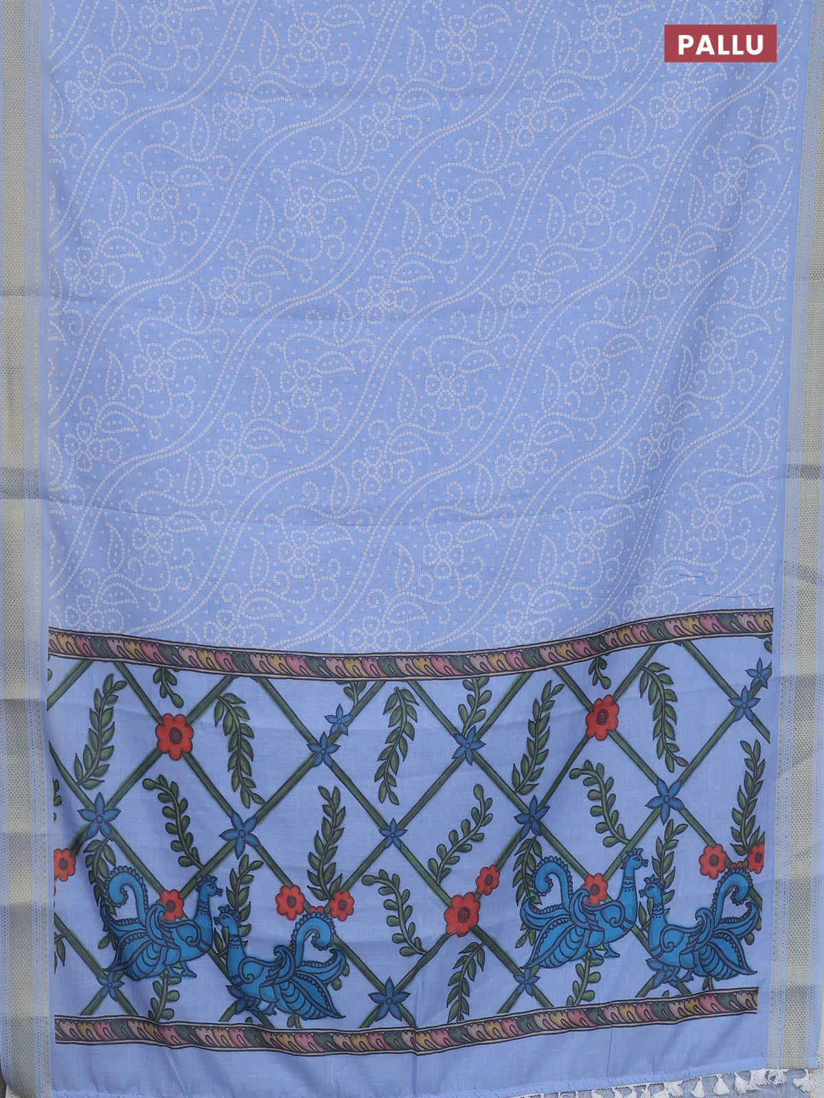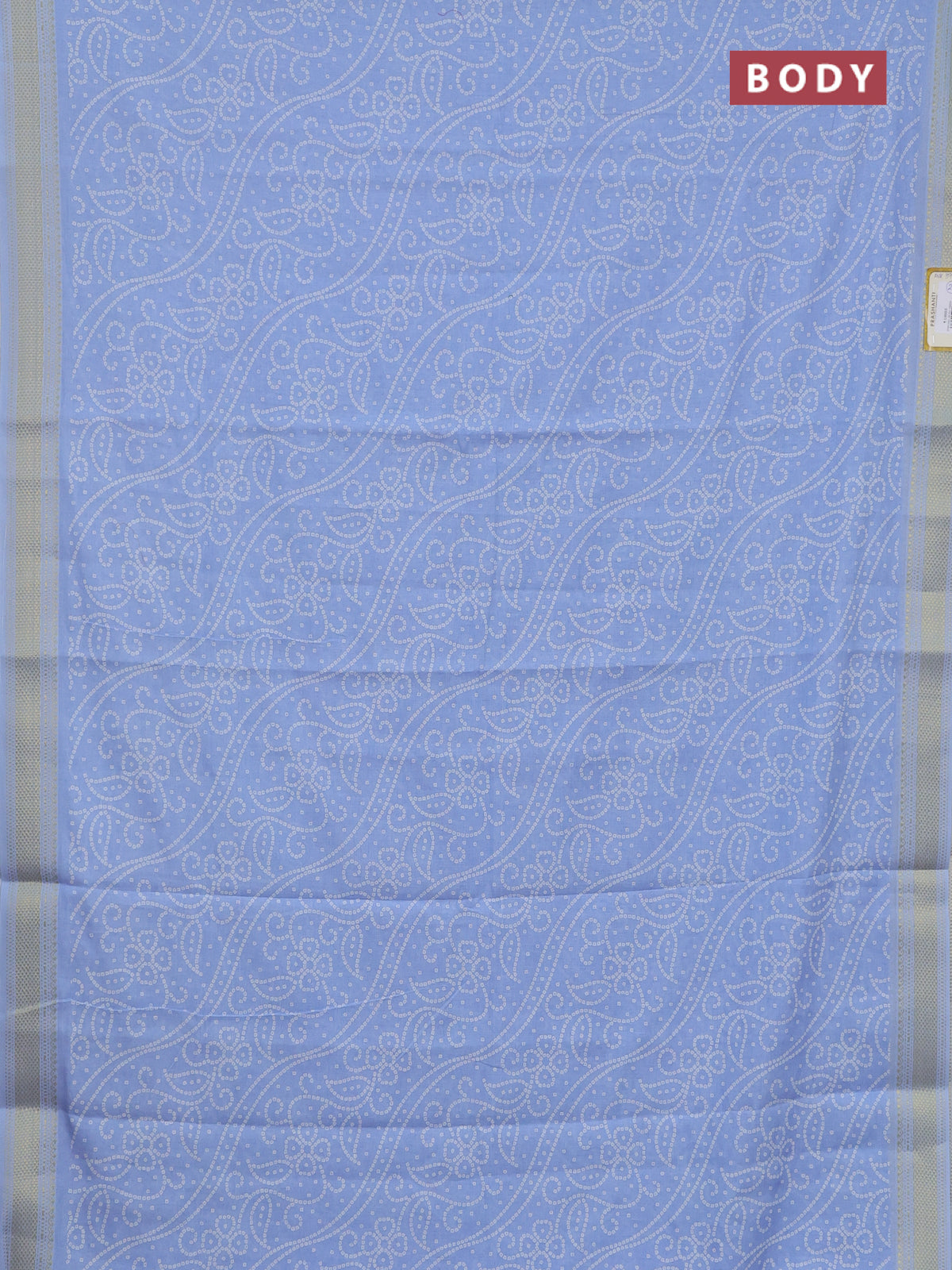 Spun cotton saree blue shade with allover bandhani prints and zari woven border