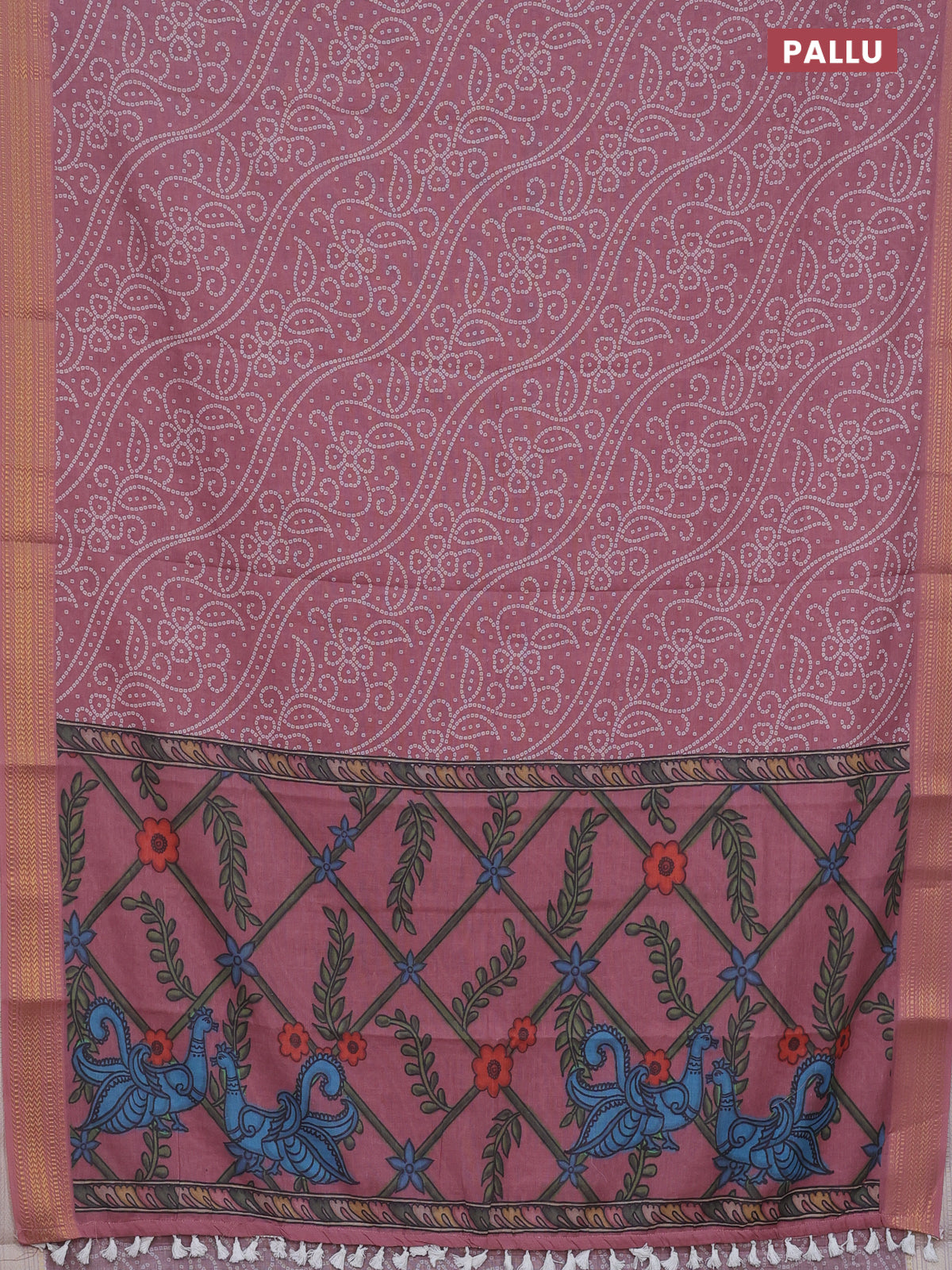Spun cotton saree maroon shade with allover bandhani prints and zari woven border
