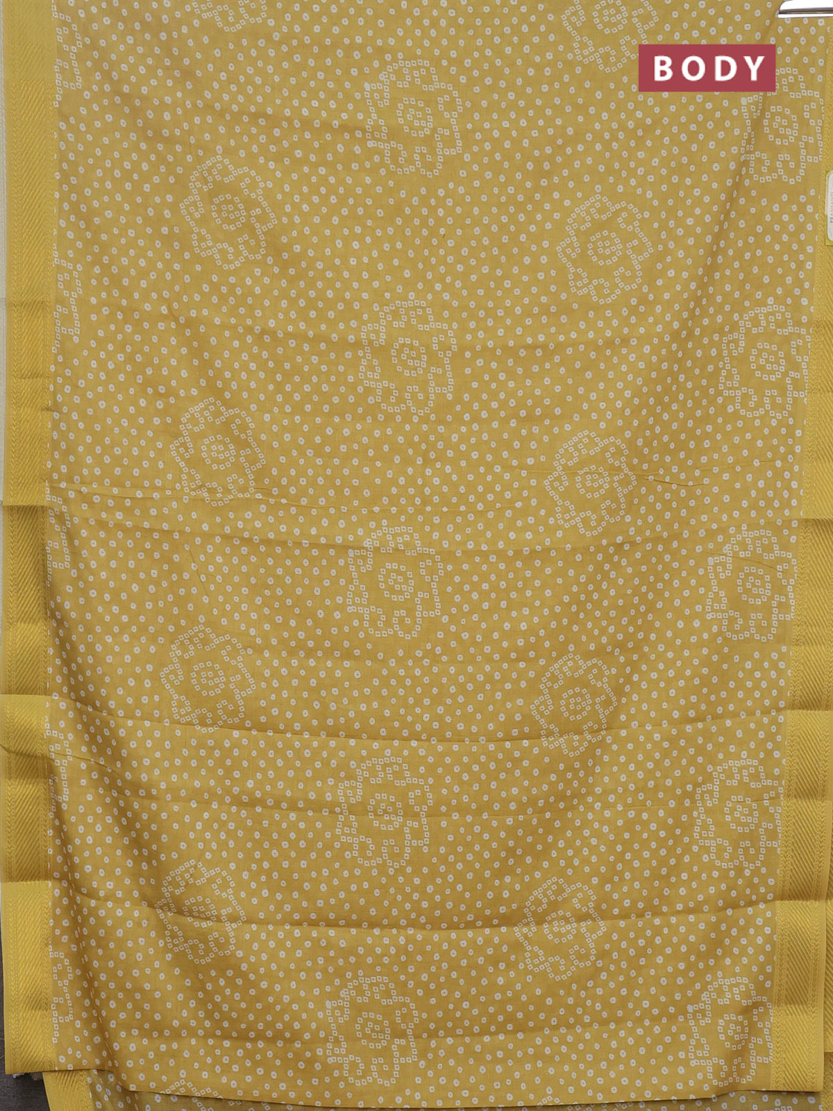Spun cotton saree yellow with allover bandhani prints and zari woven border