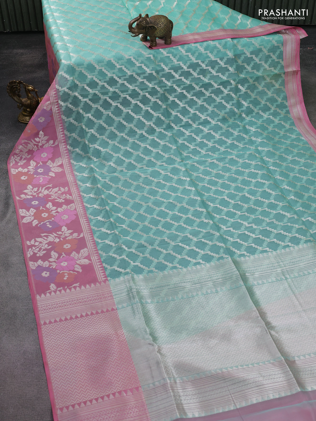 teal shade and peach pink Banarasi kora jamdhani silk saree