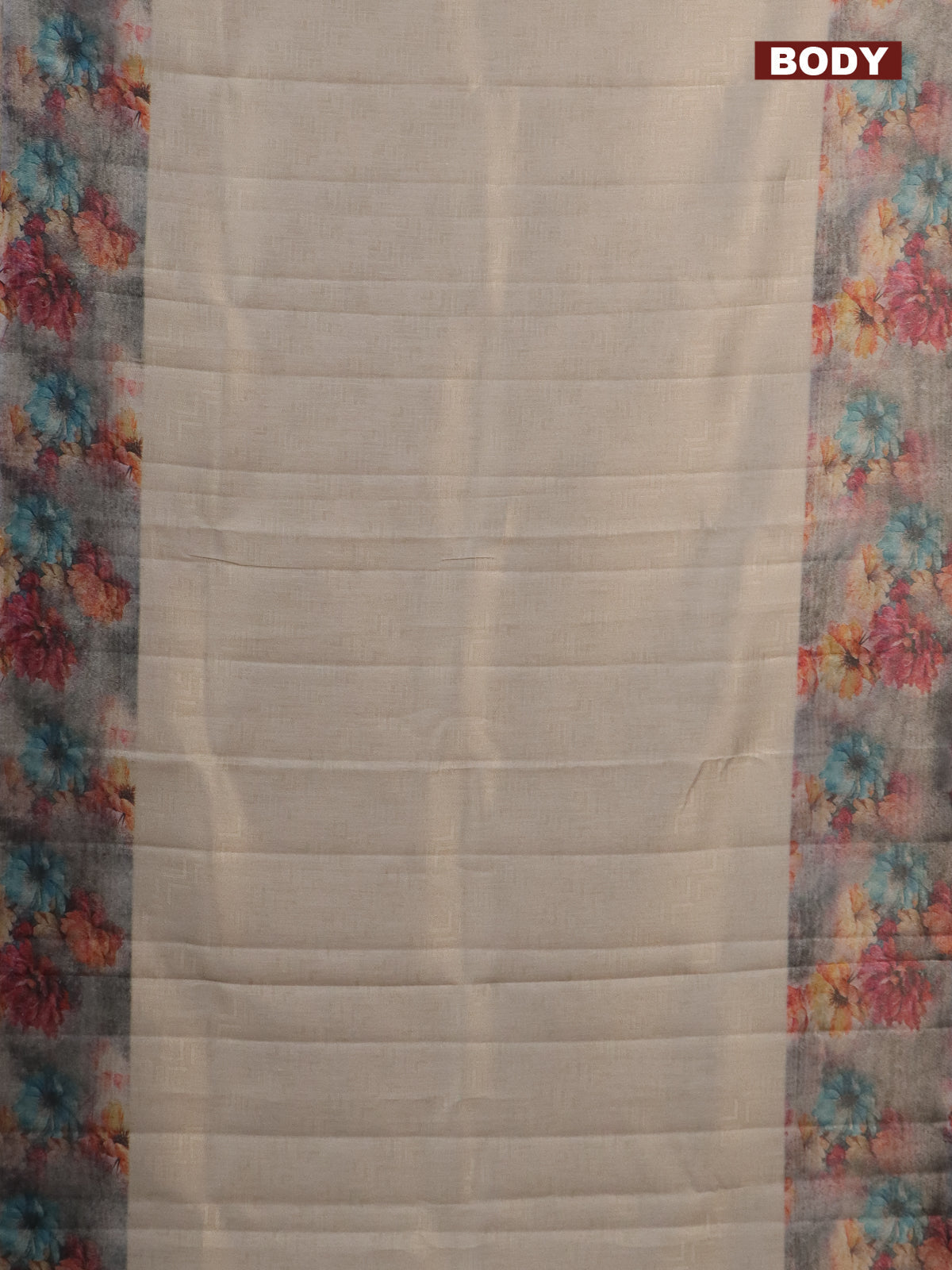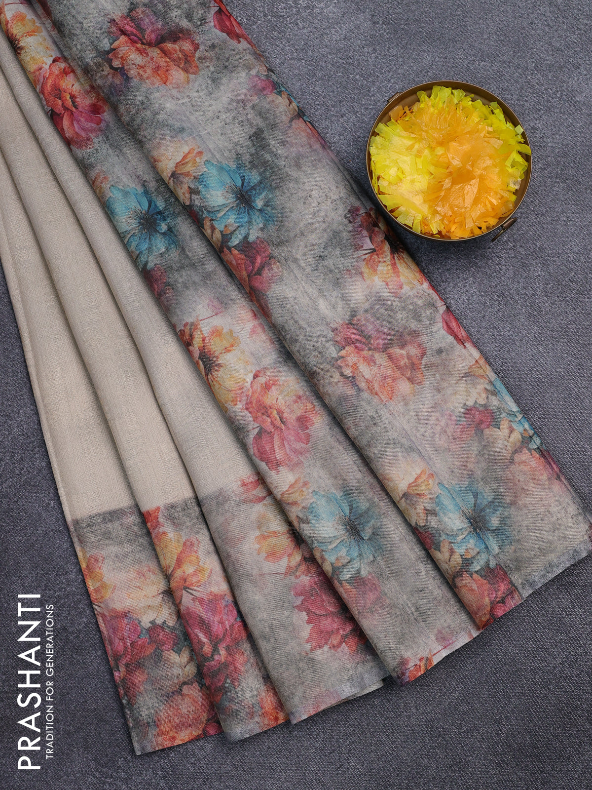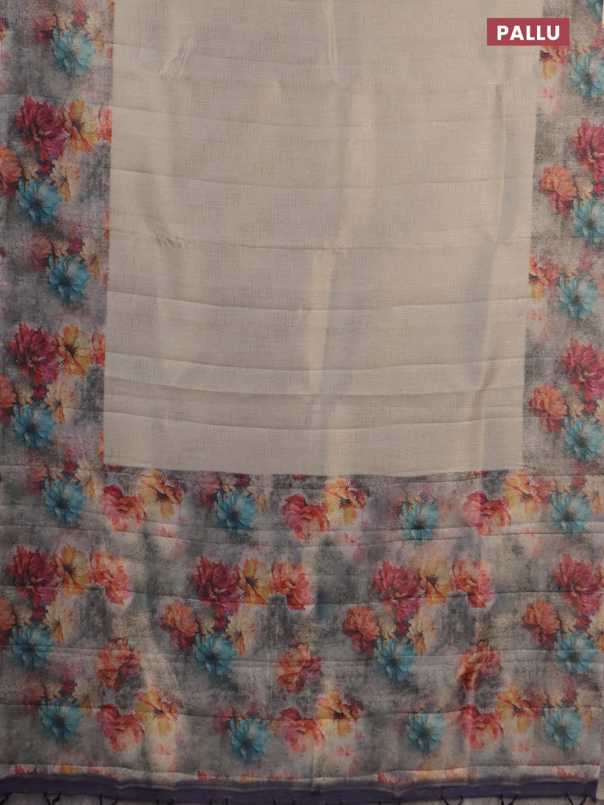 Tissue saree beige and violet with allover zari weaves and floral digital printed border