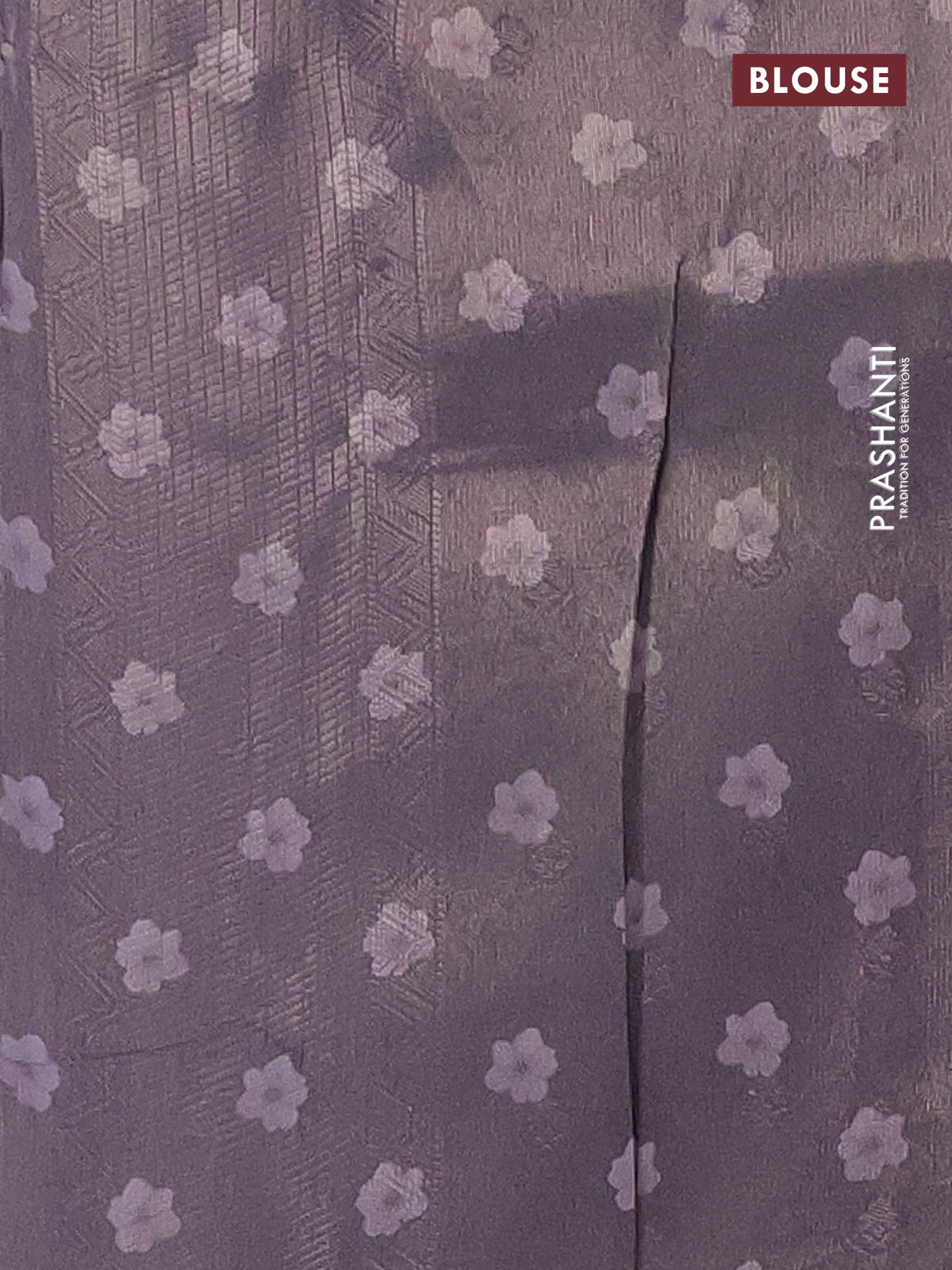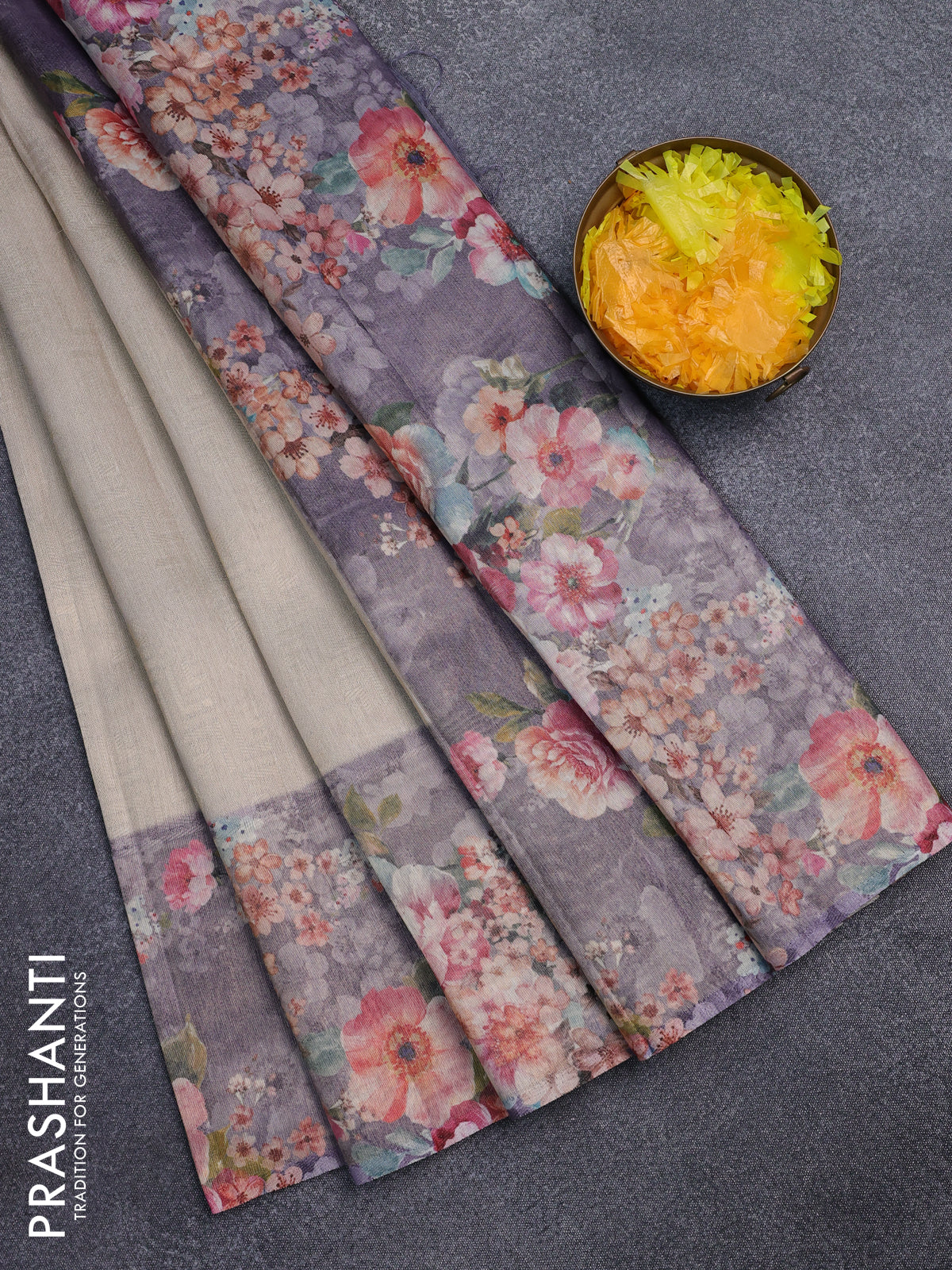Tissue saree beige and violet with allover zari weaves and floral digital printed border