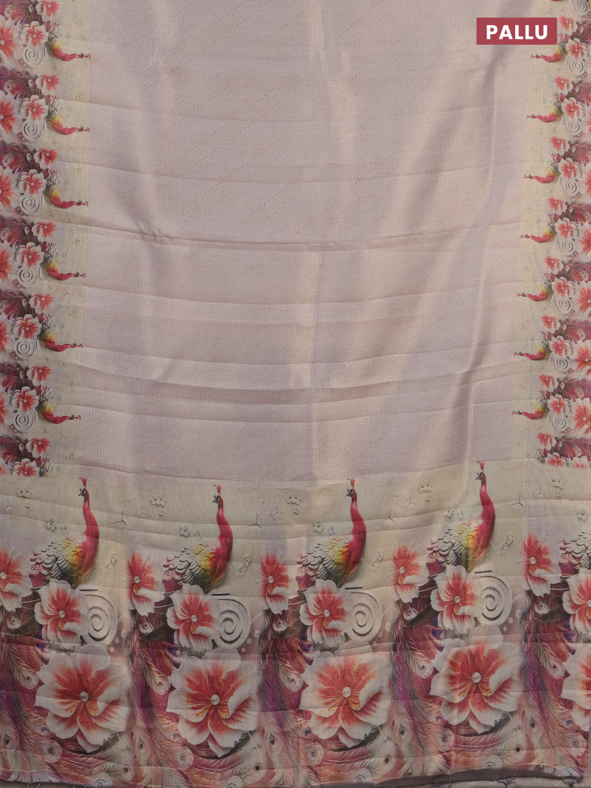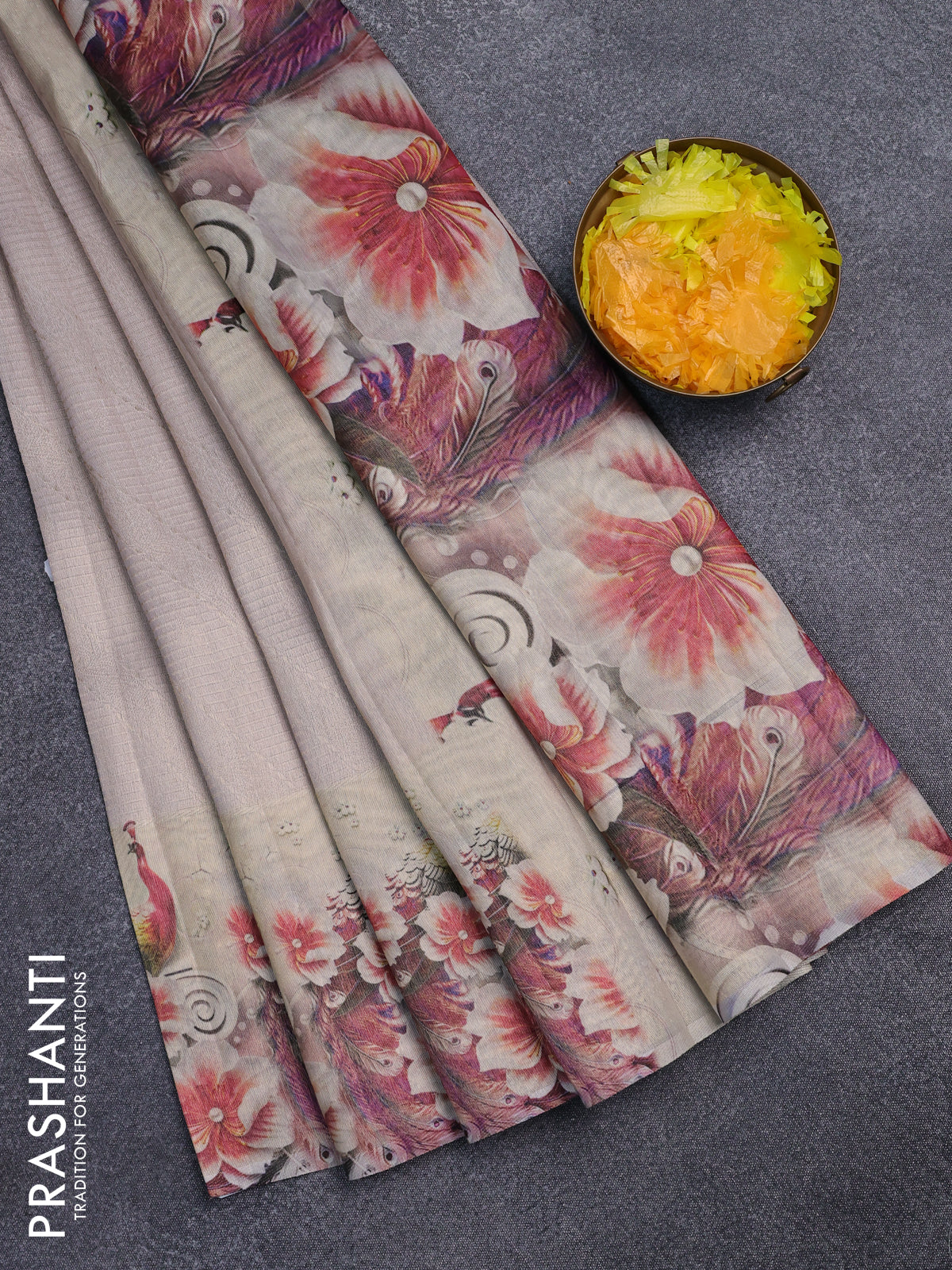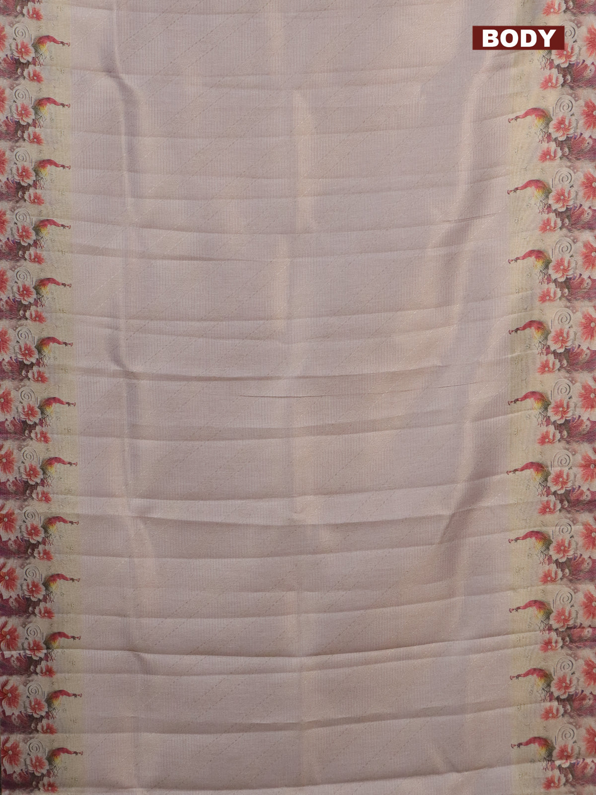 Tissue saree beige with allover zari weaves and floral digital printed border